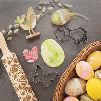 Abyste si ulehčili práci, vyzkoušejte embosované válečky, razítka a vykrajovačky jarních a velikonočních tvarů.