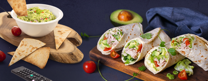 Malé trojúhelníčky je možné koupit už hotové v sáčku, proč si ale neudělat obměnu. Stačí tortilly lehce stříknout olejem ve spreji, nakrájet na menší trojúhelníčky, jako když se krájí pizza. Posypané kořením je vložte na plech do trouby na 5-10 minut. Pozor, je to rychlovka, po upečení budou křupavé jako chipsy. K nim se hodí různé salsy, oblíbené guacamole z avokáda nebo smetanový dip s koriandrem. Tak si křoupněte a fanděte.