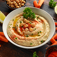 – je studená pomazánka, pokrm pocházející pravděpodobně z oblasti Libanonu, který zdomácněl nejen v arabských státech, ale rozšířil se po celém světě. Jedná se o rozmixovanou uvařenou cizrnu, smíchanou s tahini pastou, olivovým olejem, česnekem, citronovou šťávou a solí.