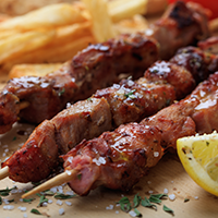 – je oblíbené řecké jídlo složené z malých kousků jehněčího nebo vepřového na špejli. Hodí se jak vepřová krkovice, tak i jehněčí krk nebo kýta, potřená česnekem, solí, olejem a citrónovou šťávou.
