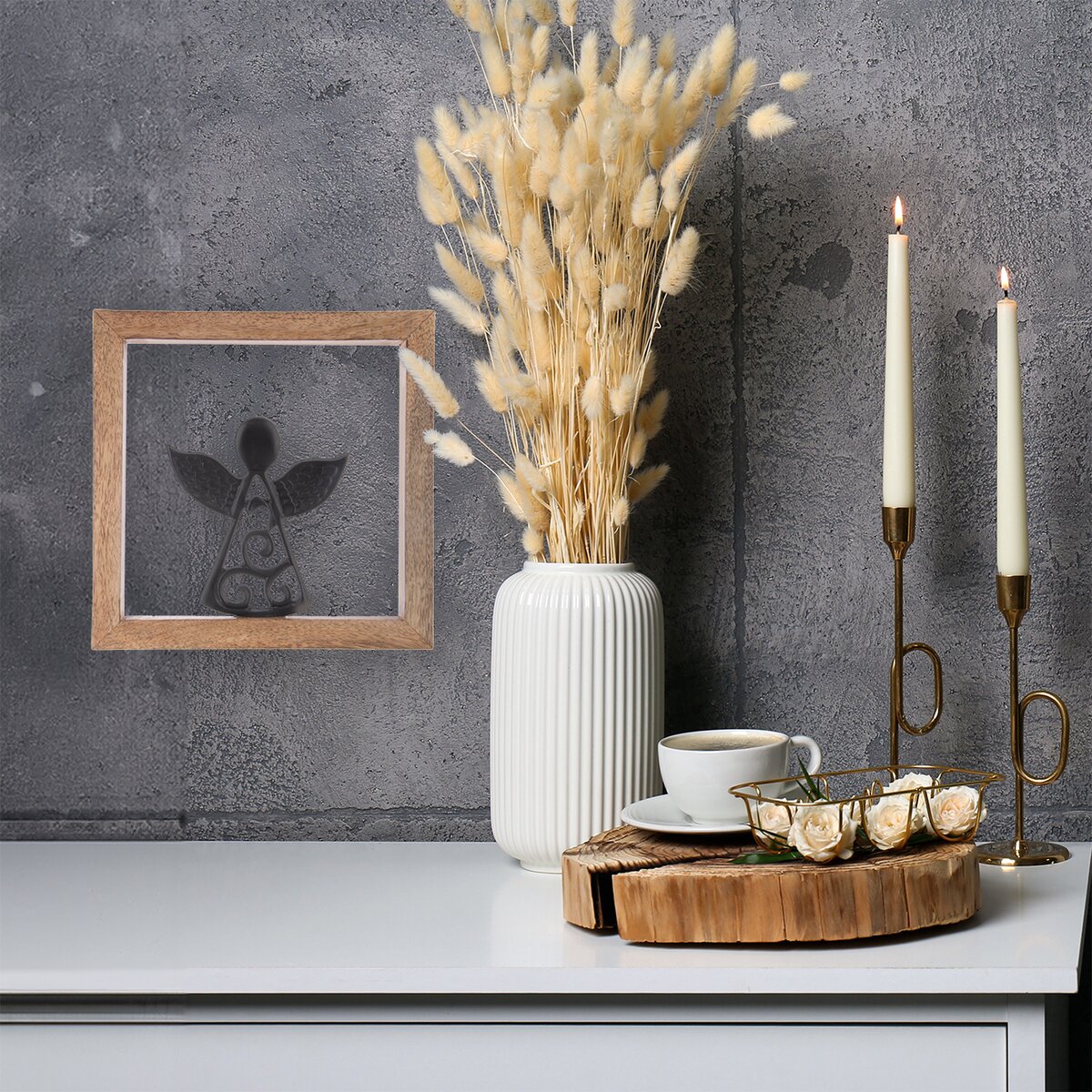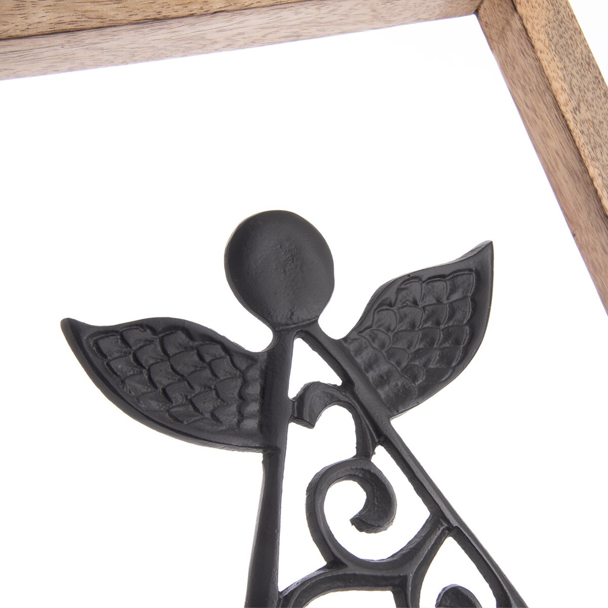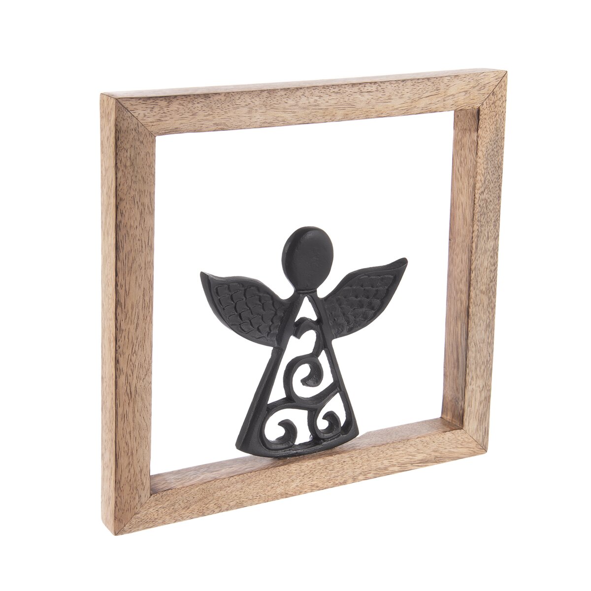 Anděl symbolizuje pohodu, něhu, empatii a vykouzlí příjemnou atmosféru plnou lásky v každém příbytku. Unikátní kresba dřeva mangovníku okouzlí milovníky hygge stylu, jednoduché, strohé interiéry příjemně zútulní. Rámeček stačí zavěsit na zeď nebo jej opřít o komodu, postavit jej do knihovny nebo na polici.