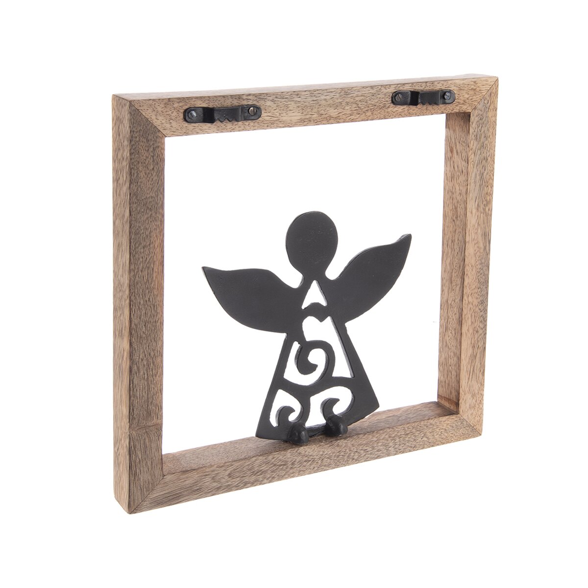 Kód produktu 351855Zajímavý rámeček z mangového dřeva doplňuje kovový anděl s roztaženými křídly. Lze jej zavěsit na 2 podlouhlé úchyty, bude krásnou dekorací i milým dárkem.