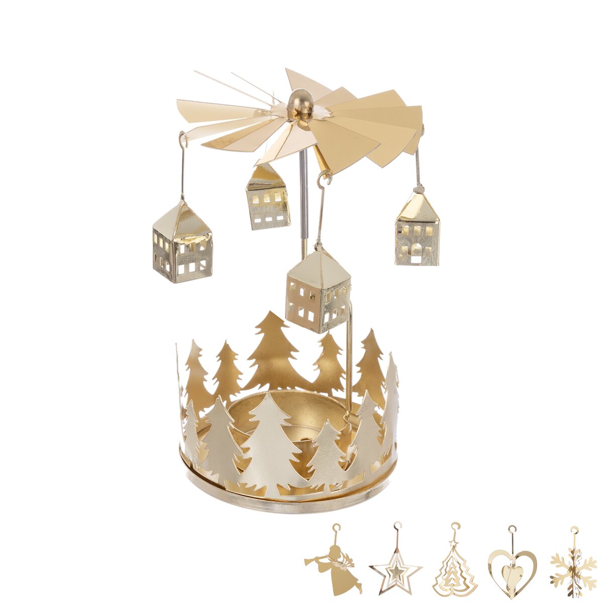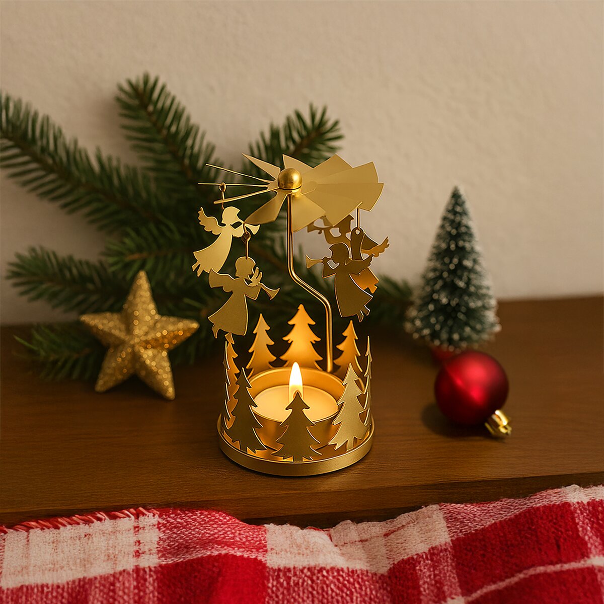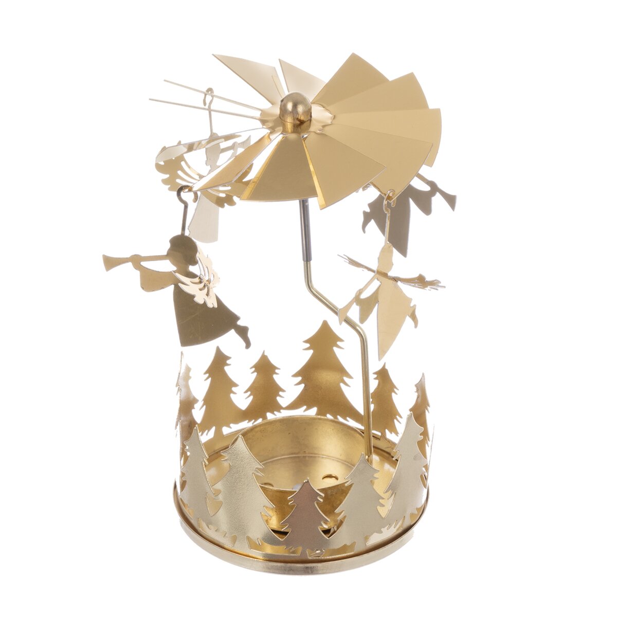 Andělské zvonění je svícen ve zlatém odstínu. Je to klasická adventní výzdoba slavnostního stolu, která navodí příjemnou vánoční atmosféru díky otáčení a teplým světlem čajové svíčky (není součástí balení).