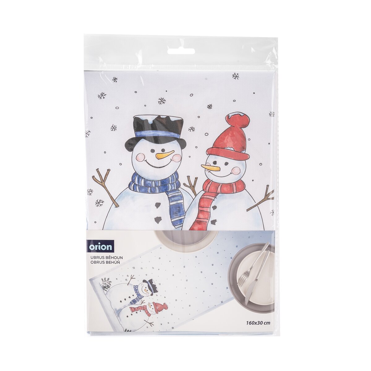 Kód produktu 728093Světlý běhoun s motivem sněhuláků a poletujících sněhových vloček je vyroben ze 100% bavlny a ozdobí stůl v kuchyni, jídelně i obývacím pokoji v zimním období, v době Adventu a Vánoc.