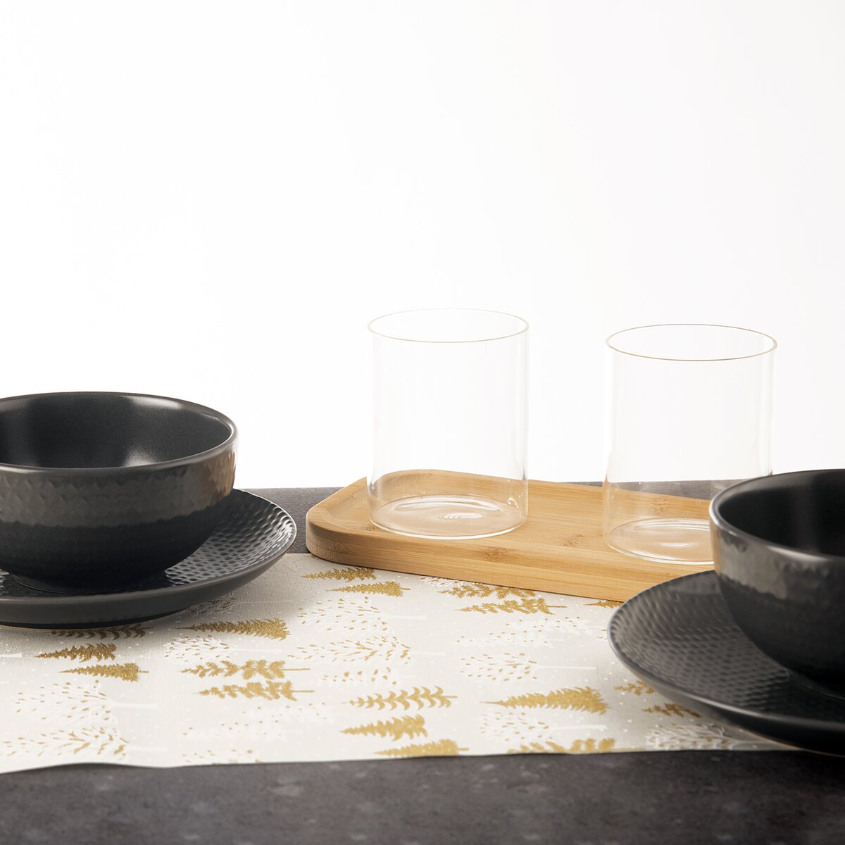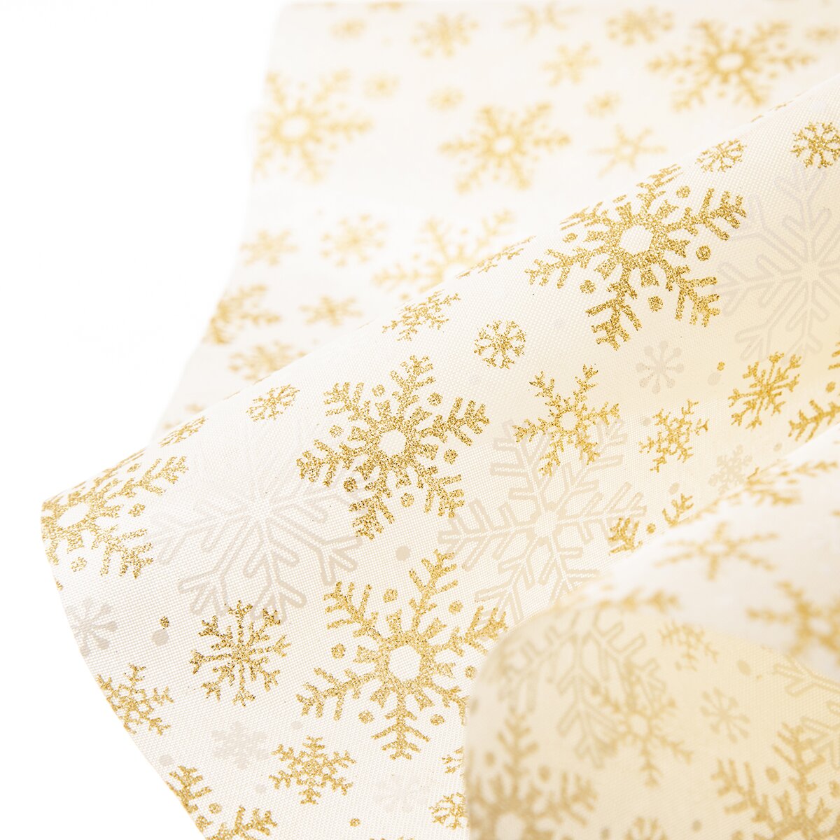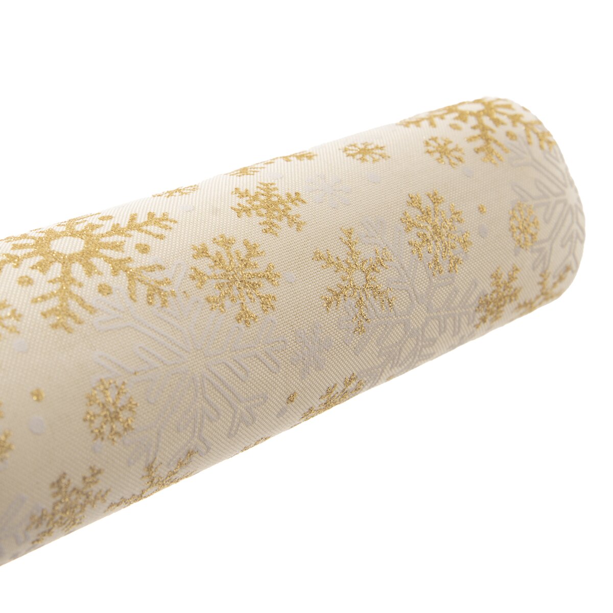 Kód produktu 728023Světlý běhoun s motivem bílých a zlatých stromečků a vloček, vyrobený z polyesteru, je určen na střed stolu. Ozdobí sváteční stůl v kuchyni, jídelně i obývacím pokoji.