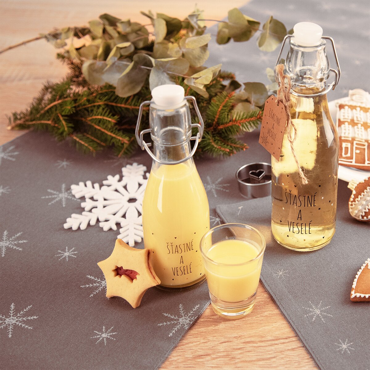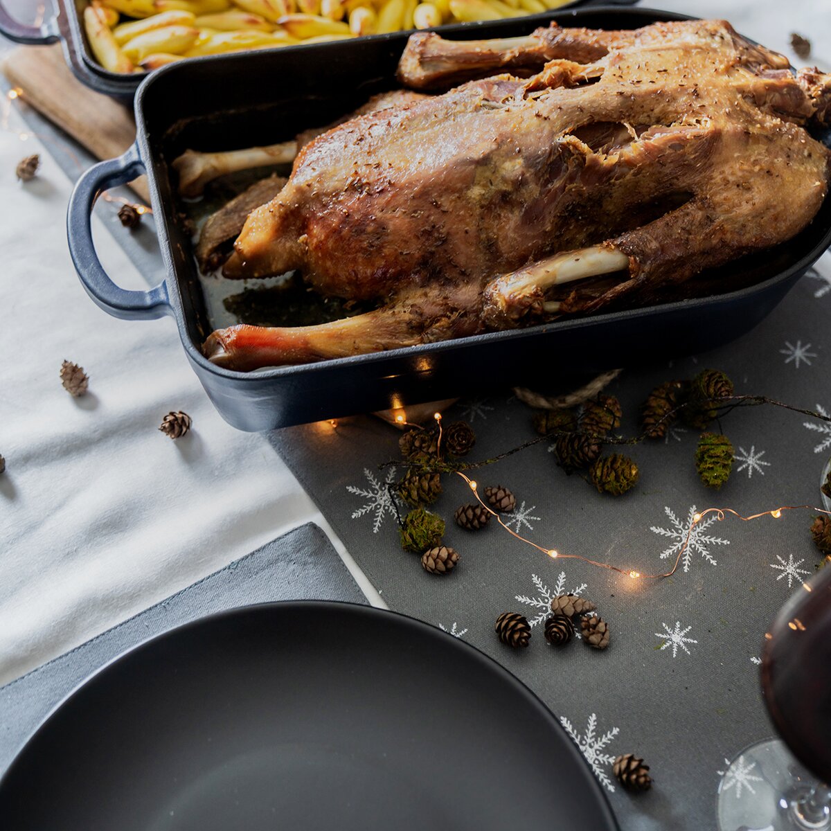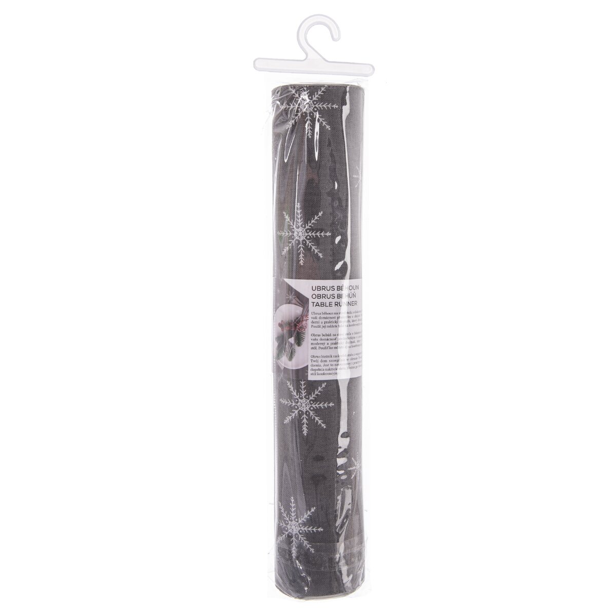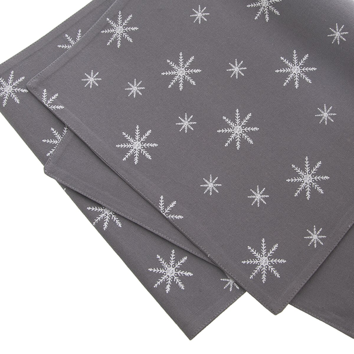 Slavnostní náladu vytvoří kromě krásného jídelního servisu také zajímavý šedý běhoun s motivem bílých sněhových vloček. Lze jej položit na jednobarevný ubrus nebo přímo na desku stolu. Vykouzlíte si tak jednoduše sváteční atmosféru.