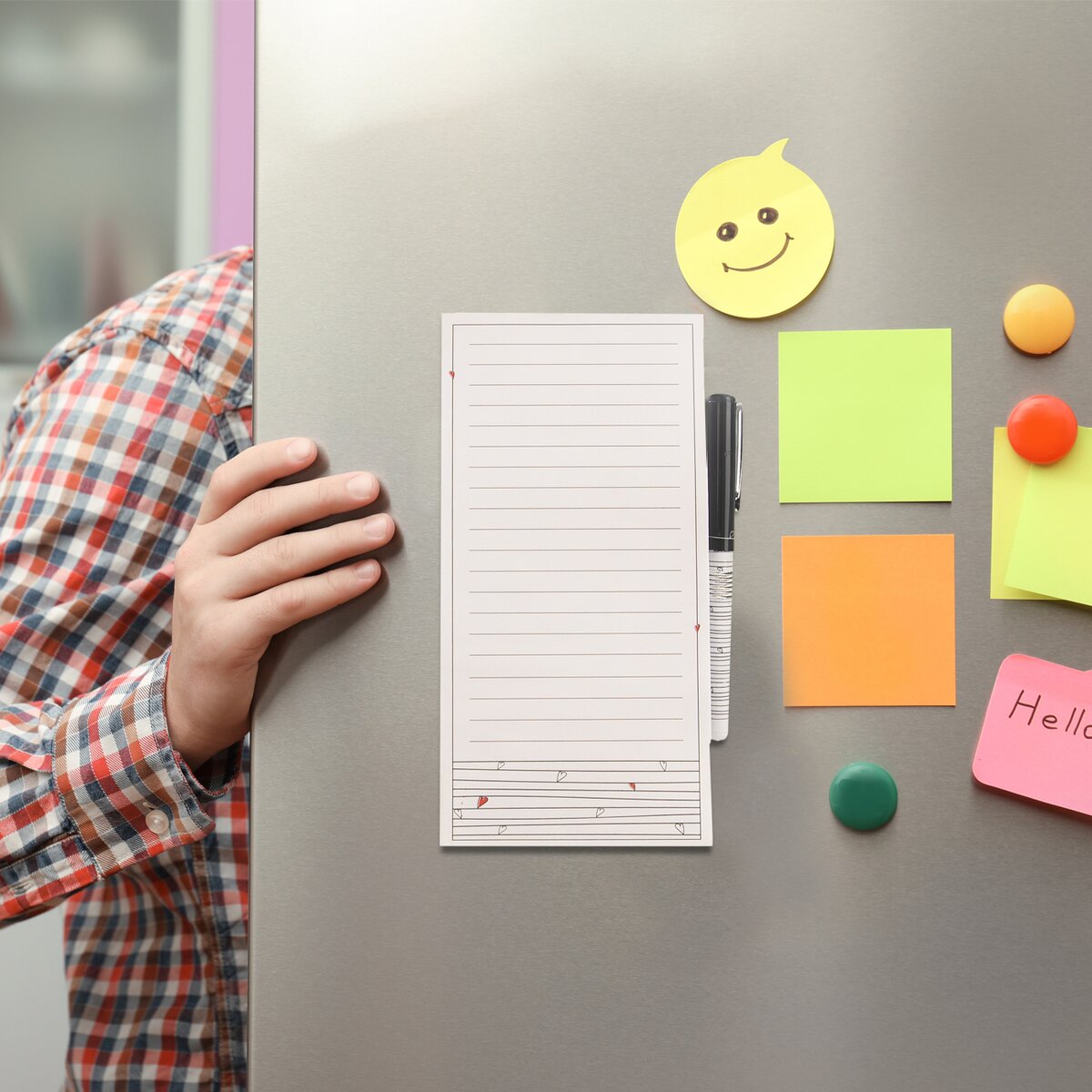 Ze zadní strany je opatřen magnetem, díky němuž můžete mít blok v kuchyni neustále po ruce, připevněný na dveřích ledničky. Je lepený v horní části, takže jednotlivé listy snadno utrhnete.