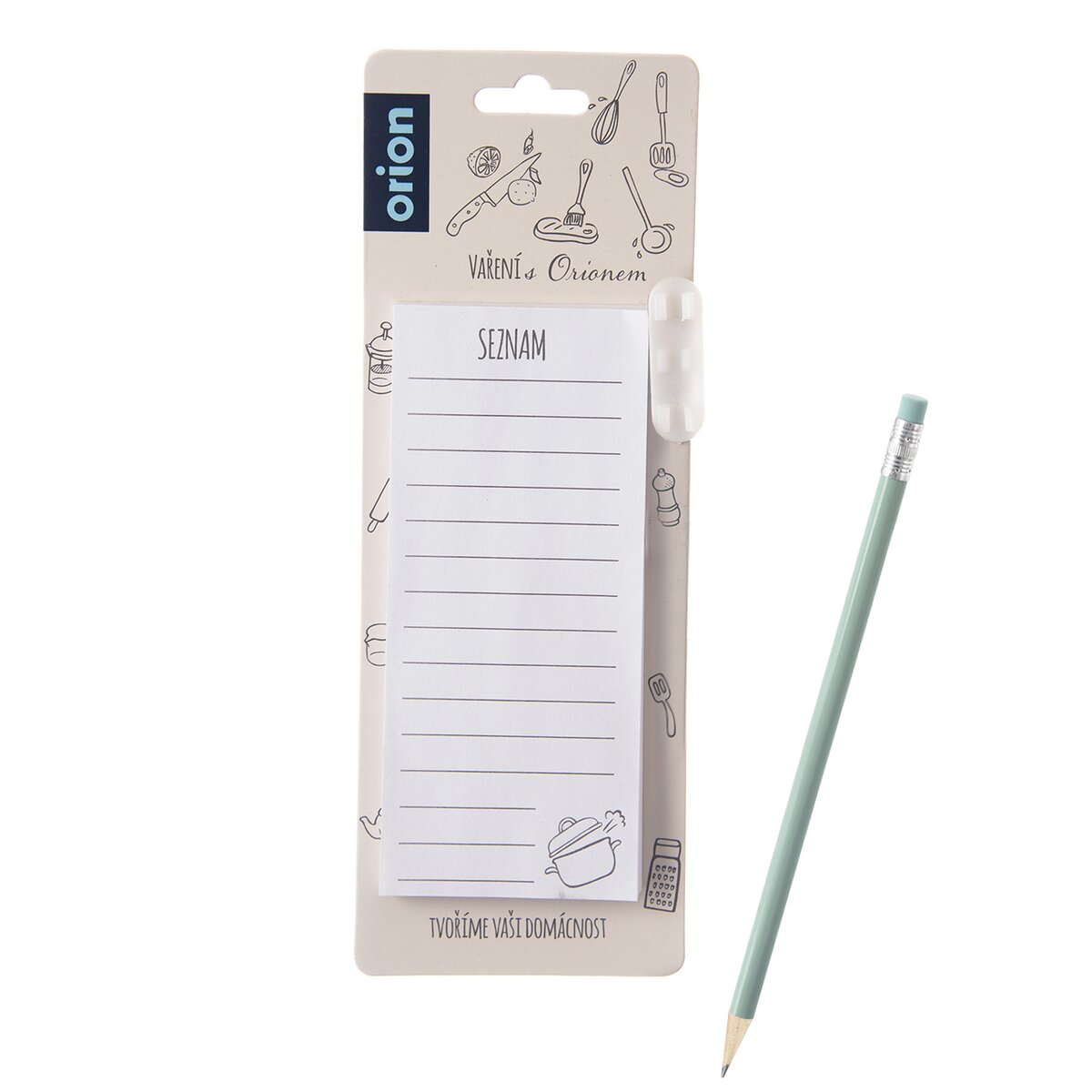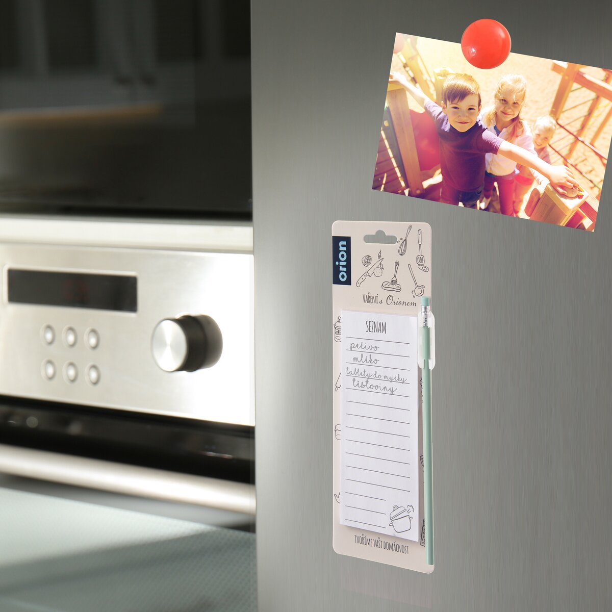 Kód produktu 741186Linkovaný blok s tužkou a gumou můžete mít v kuchyni pohodlně při ruce, pokud využijete magnetu na jeho zadní straně a připevníte ho na lednici nebo jinou kovovou plochu. Využijete jej nejen na soupis nákupu i pro úkoly nebo vzkazy.