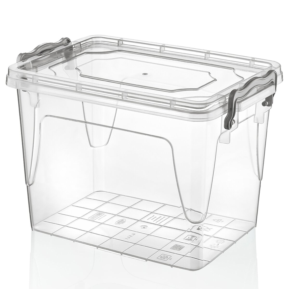 Kód produktu 126094Vysoký průhledný úložný box o objemu 21 l s víčkem na dva pevné klipy. Je z pevného plastu a má tvar obdélníku.
