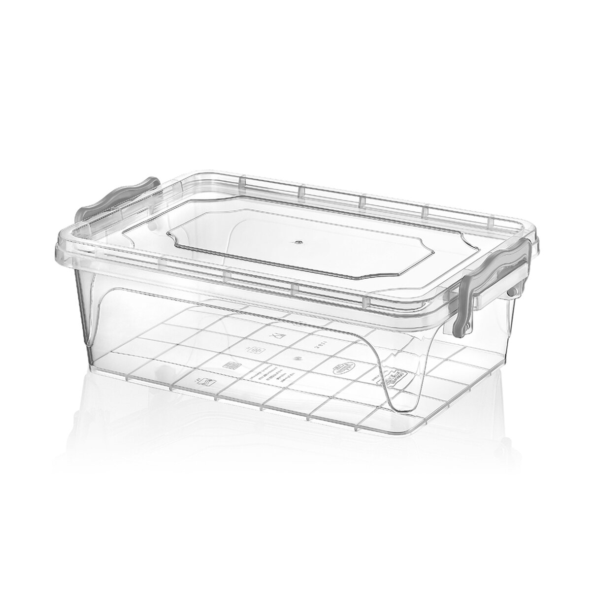 Kód produktu 122700Nízký plastový box o objemu 2 l ve tvaru obdélníku s uzavřením na dva klipy.
