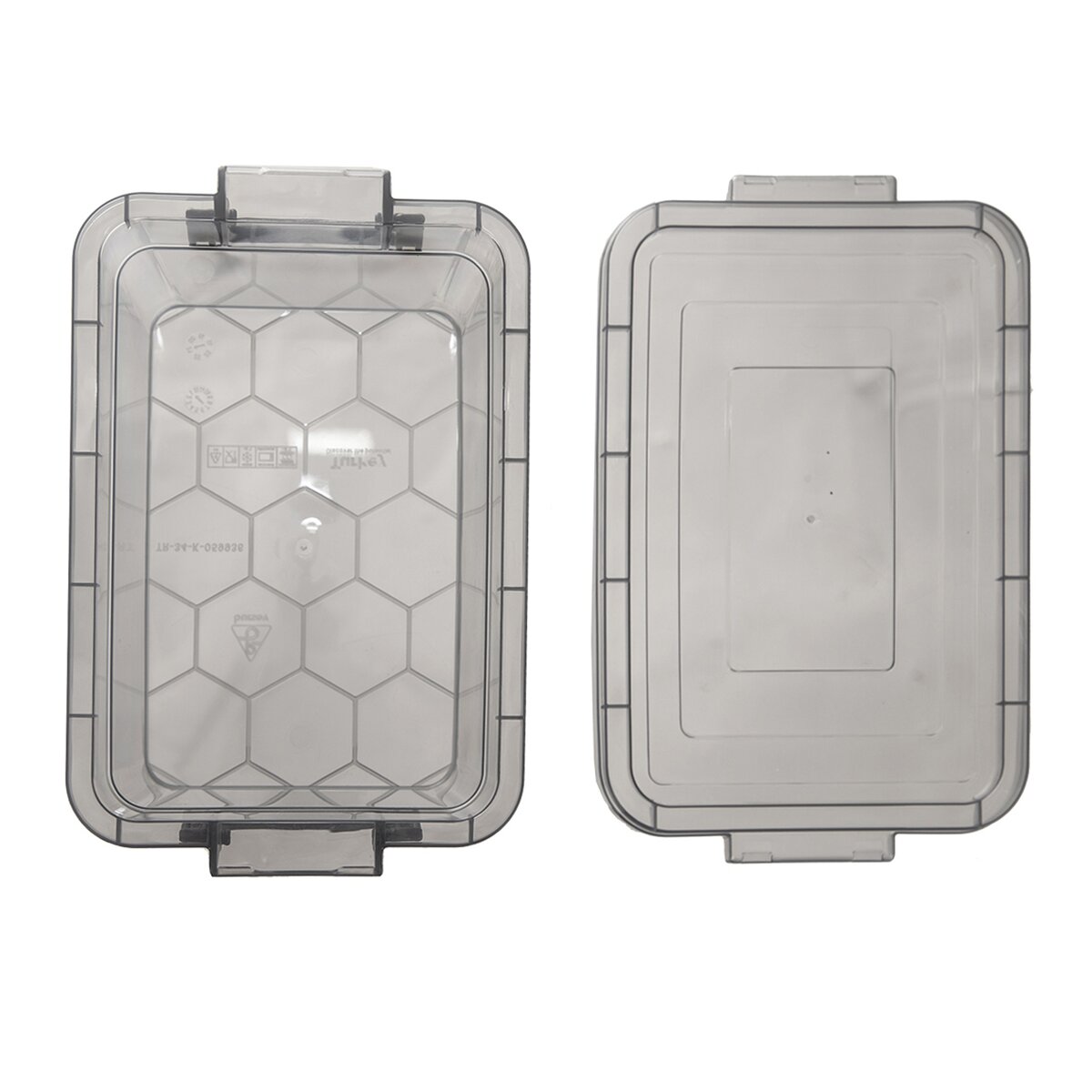 Kód produktu 127311Kouřově zabarvený plastový box GREY o objemu 5 l, s víčkem a uzavíráním na dva klipy, vhodný k uložení potravin, drobností v koupelně, dílně i pokoji a k jejich přenášení.