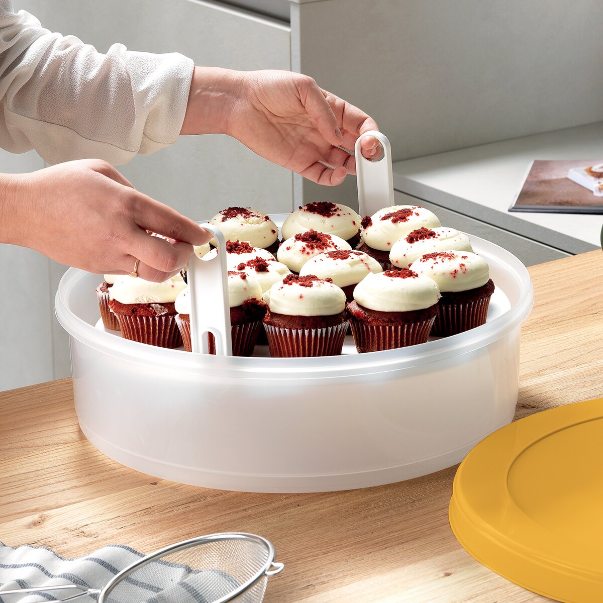 Více informacíPraktický kulatý plastový box s vyjímatelným vkladem, deskou s držadly, díky které můžete snadno a bezpečně přenášet dorty, koláče, zákusky, chlebíčky a další dobroty. Třeba na návštěvu, zahradní grilovačku s přáteli nebo oslavu příbuzných, kteří ocení vaše speciality. Po odklopení žlutého víka občerstvení lehce vyjmete pomocí vkladu a dvou držadel.