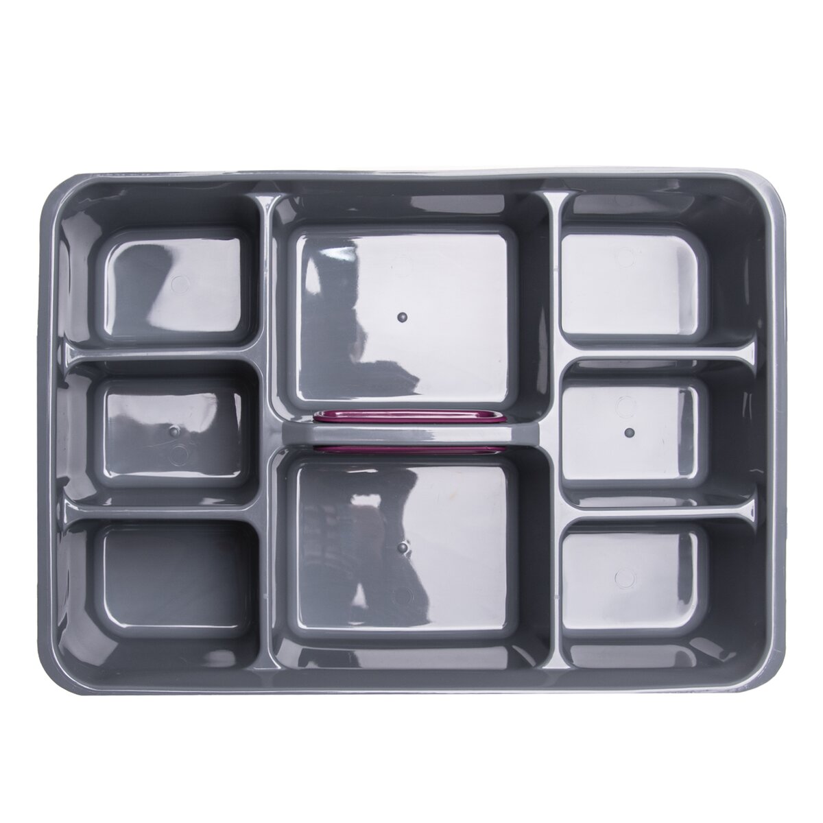 Box obdélníkový transparentní s víčkem na dva pevné klipy. Stohovatelný. Uvnitř vyjímatelný vklad s přihrádkami. Materiál: plast. Rozměry: objem 20 l, 48x32,5x20 cm.