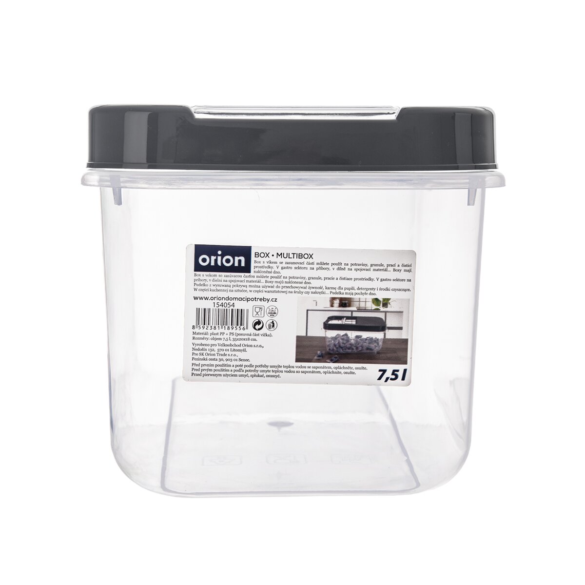 Kód produktu 154054Transparentní box SLOP o objemu 7,5 l je uzavřen šedým víkem se zasunovací částí. Skrz ni lze nabírat uskladněné sypké suroviny v domácnosti a gastroprovozech, tablety do myčky, různé drobnosti pro kutily, nářadí, krmiva atd.
