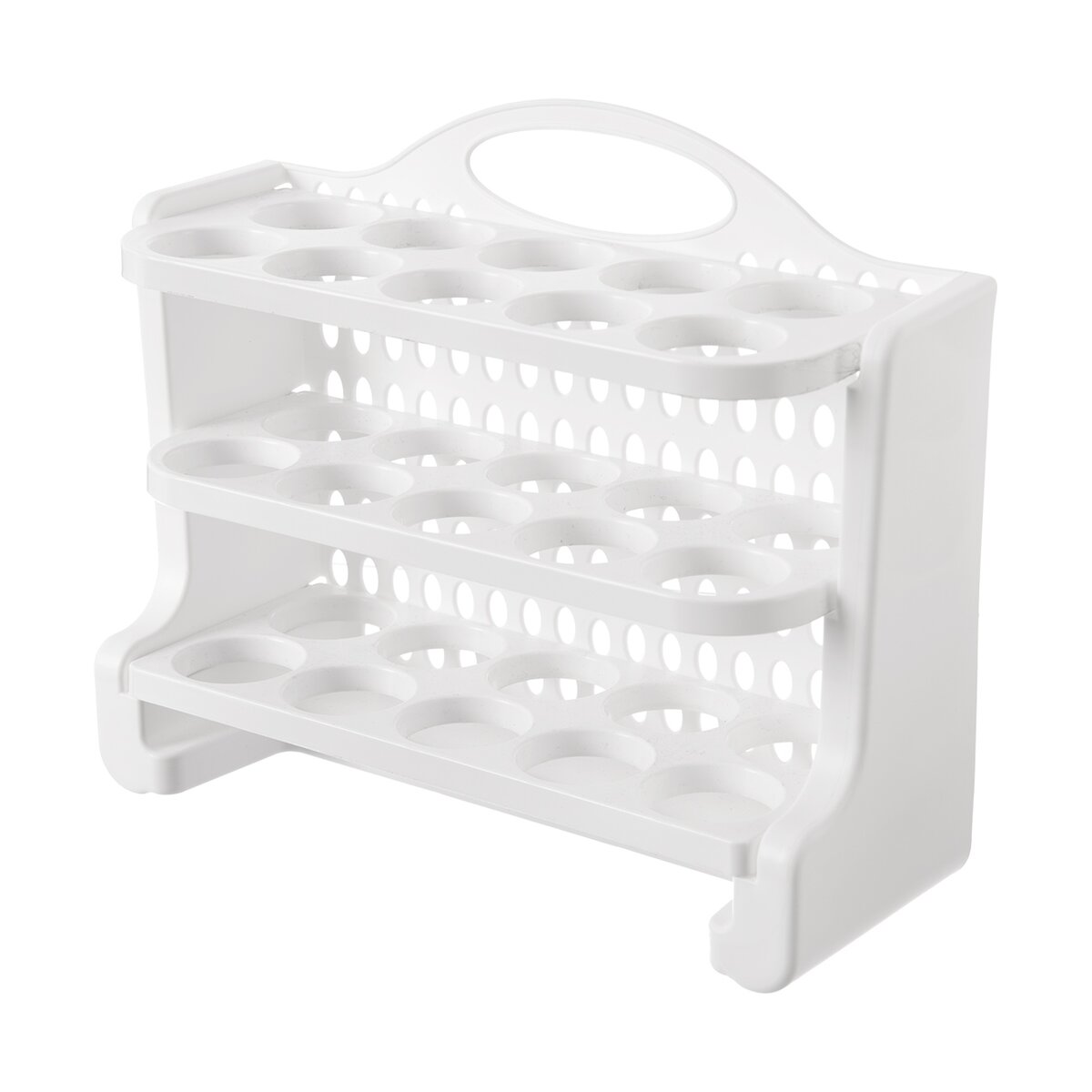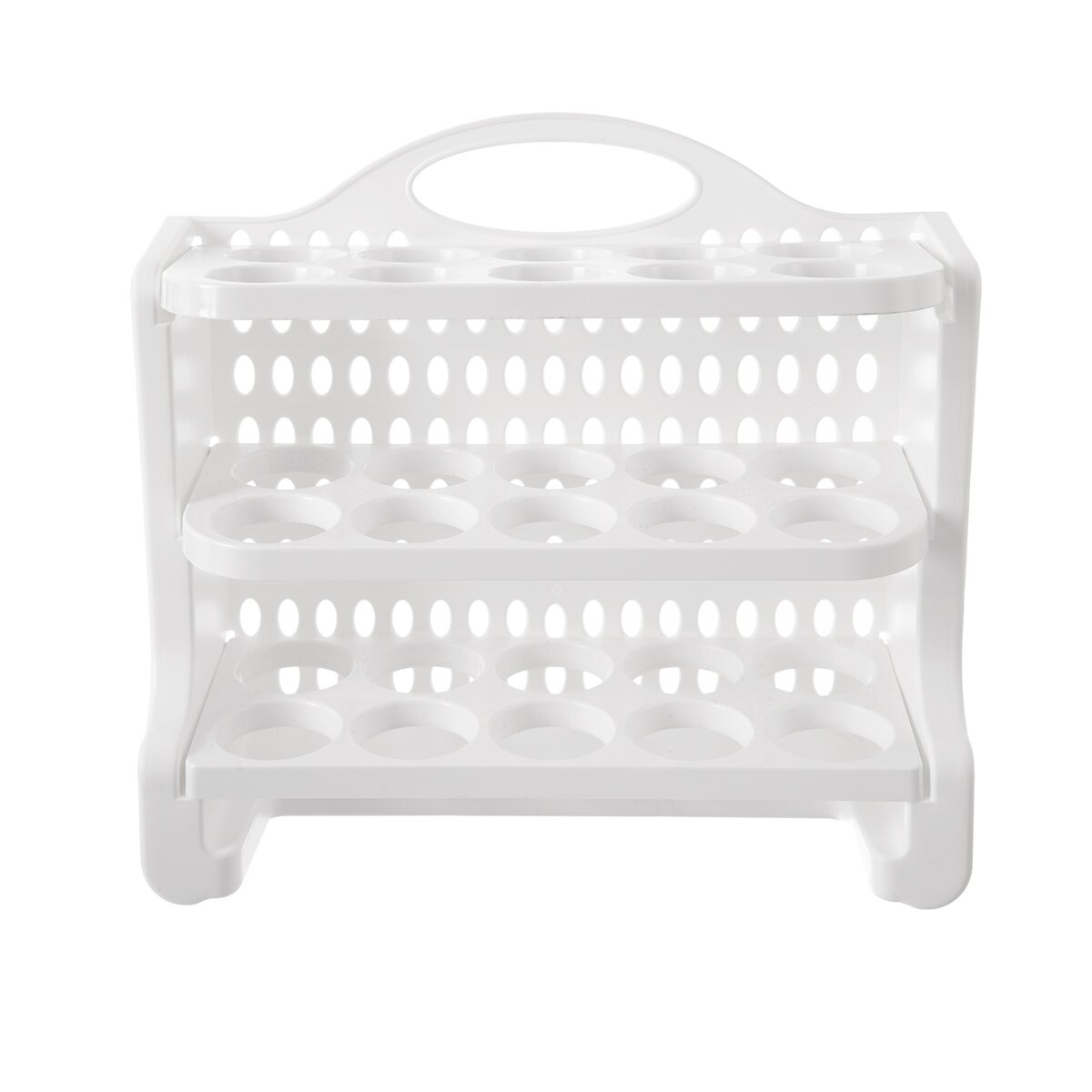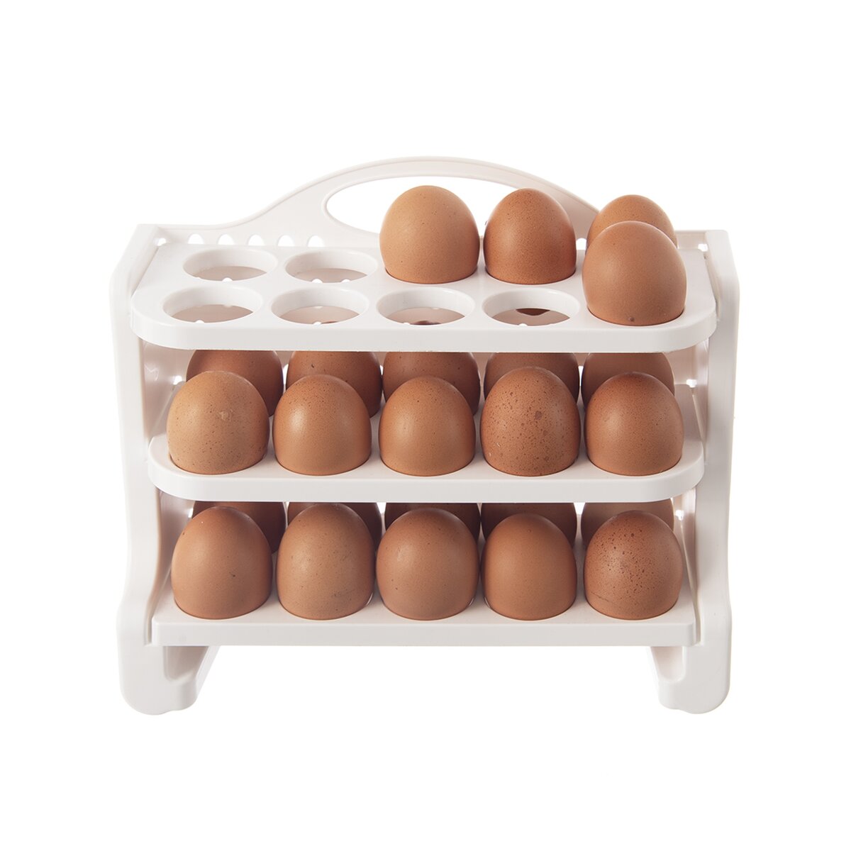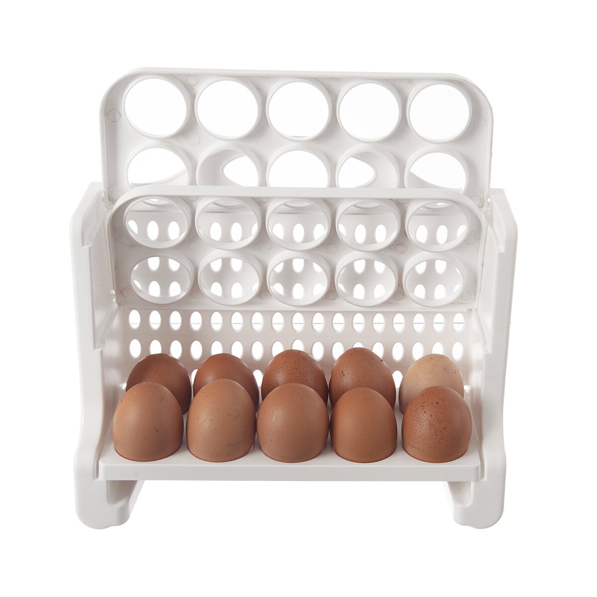 Kód produktu 154059Bílý plastový stojan o rozměru 27,5x23x10 cm slouží k uložení až 30 vajec ve 3 patrech. Lze jej umístit do dvířek lednice, jednotlivé patra lze odklopit pro pohodlnější manipulaci.