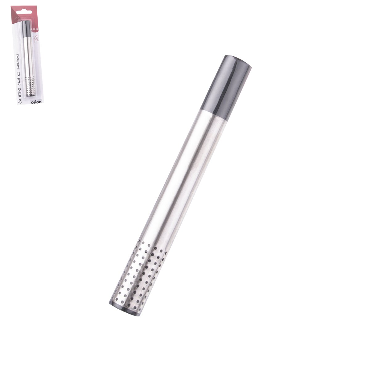 Čajítko v originálním designu. Stiskem vysunete zásobník, naplníte ho sušeným čajem, povolíte a čajítko je připraveno k použití. Materiál: nerez, plast. Barevný assort. Rozměry: pr. 2 cm, d. 16 cm.