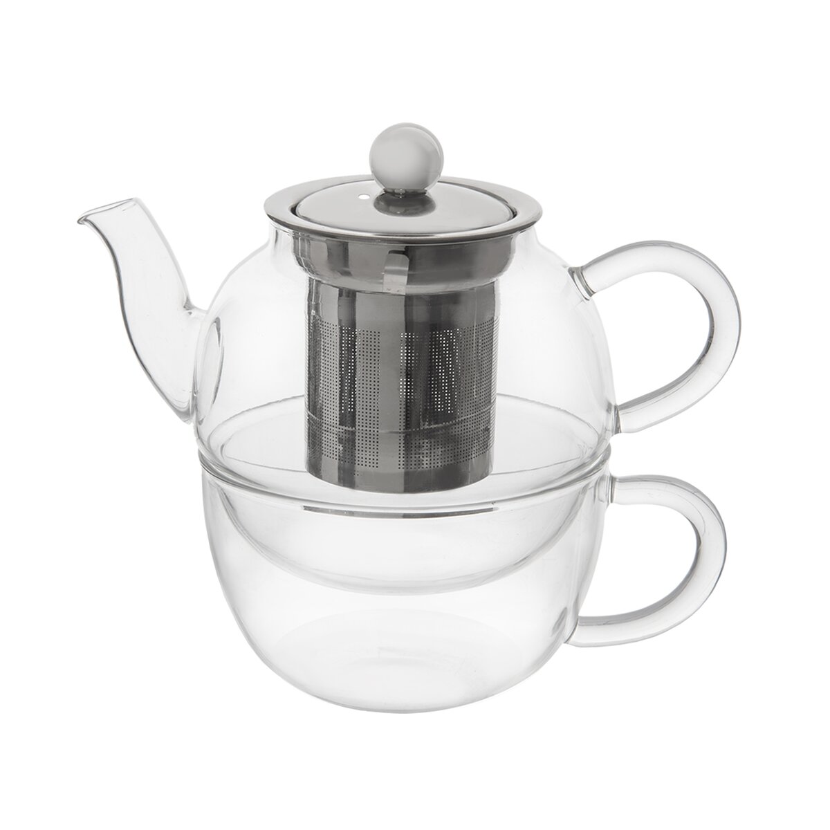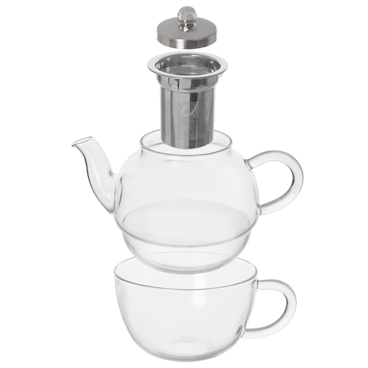 Kód produktu 129693Skleněná souprava konvičky o objemu 0,5 l a hrnku o objemu 0,35 l, vhodná díky vloženému jemnému nerezovému sítku k louhování čajů a bylinkových nálevů. Poté lze do spodního šálku čaj rovnou nalévat.