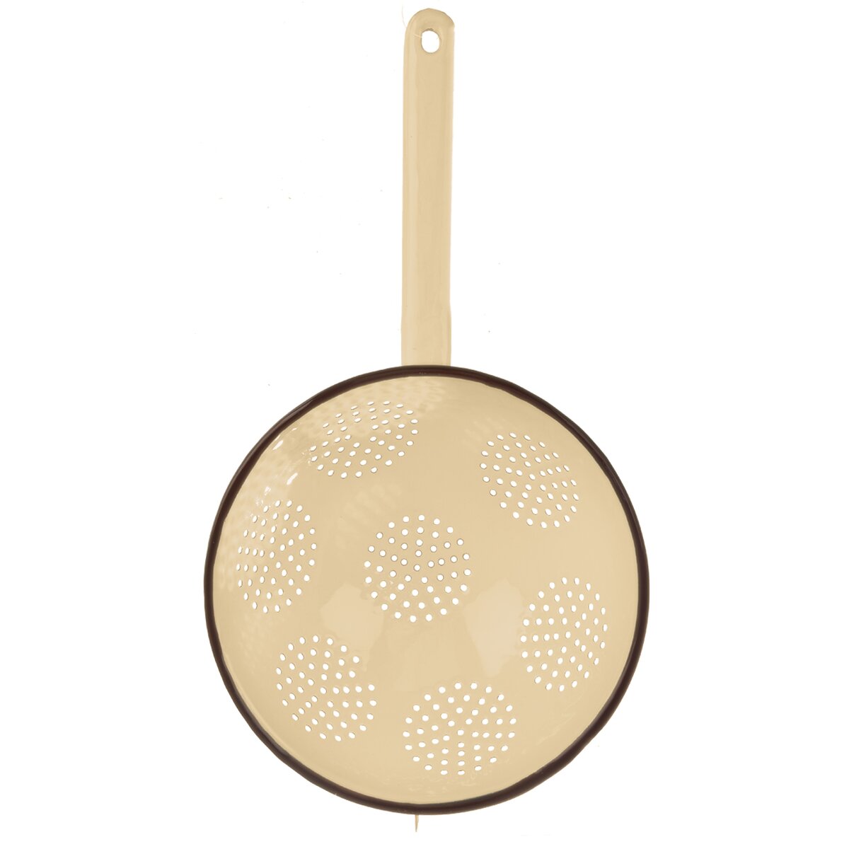 Kód produktu 124466Smaltovaný béžový cedník z kolekce BROWN. Jeho vnější průměr je 22 cm a vnitřní 20 cm.