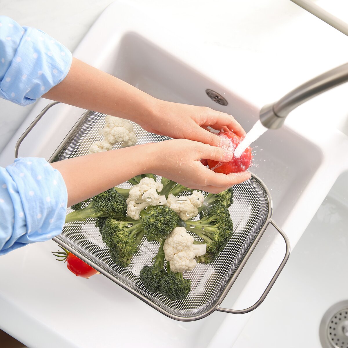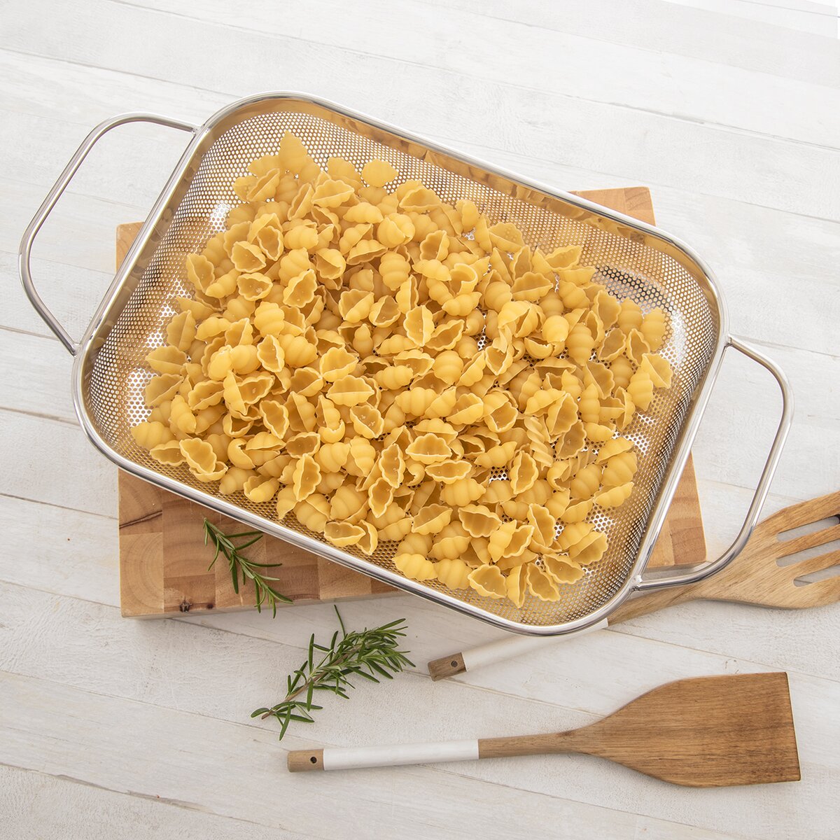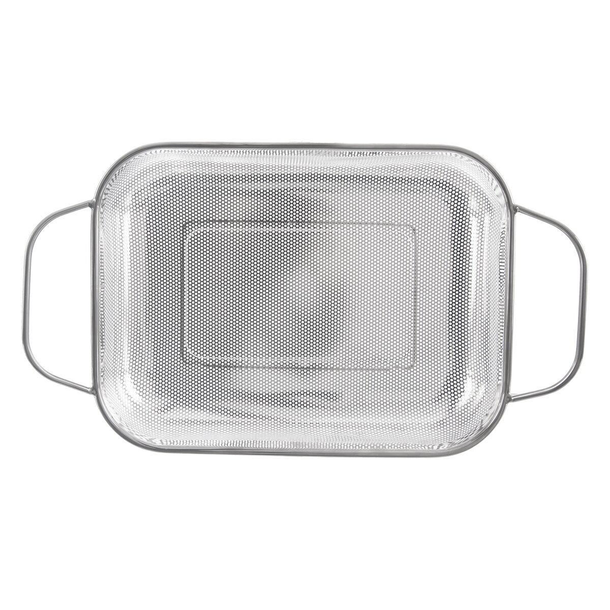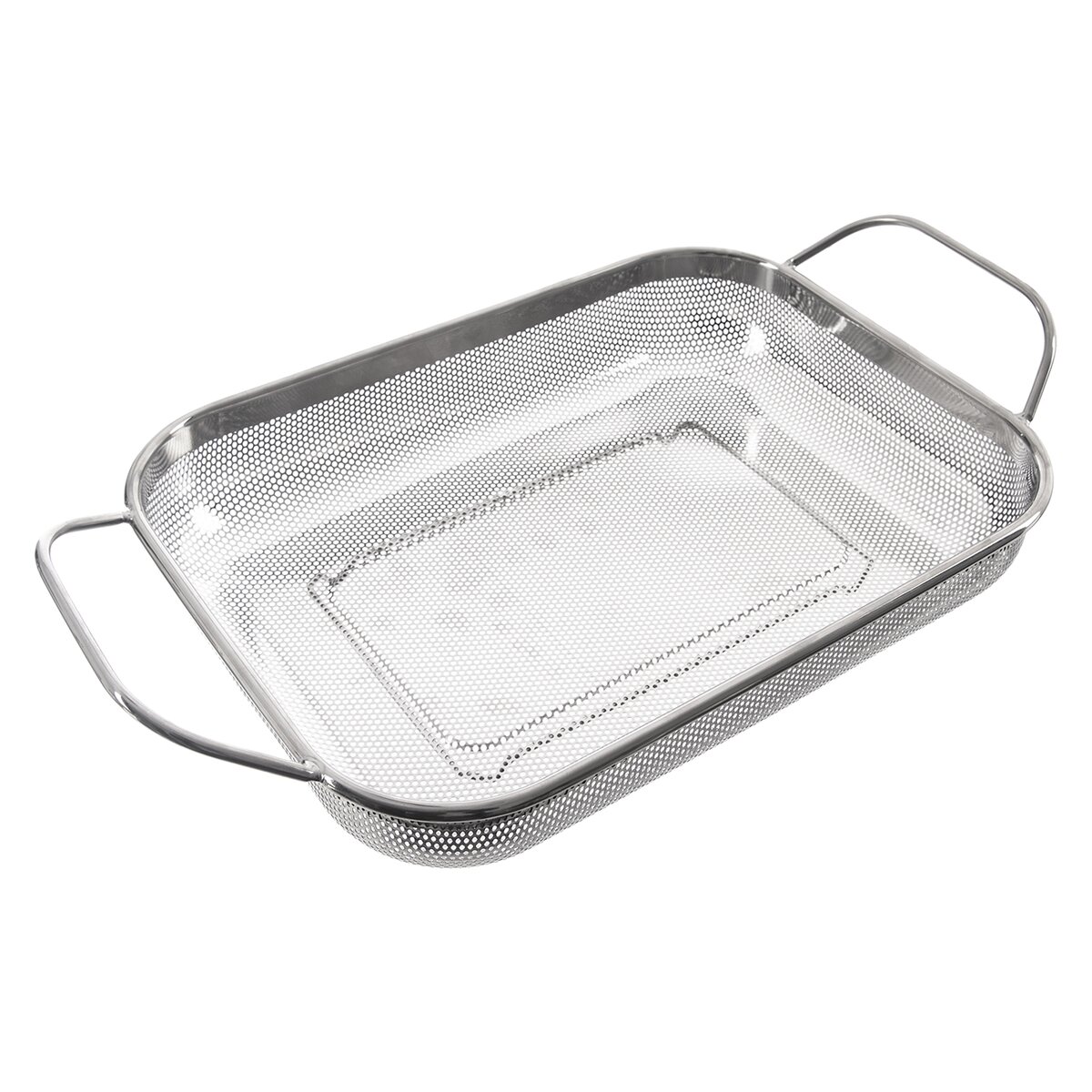 Cedník o celkové velikosti 41,5x24,5x10 cm včetně držadel se skvěle hodí také při grilování masa, klobás, zeleniny v troubě i na grilu. Nevkládejte ho však do přímého ohně, umístěte nad žár. Praktická jsou 2 držadla pro přenášení a také nožičky ze spodní strany. Při manipulaci s košíkem v troubě a na grilu použijte kuchyňské chňapky, nerezová držadla mohou být horká.
