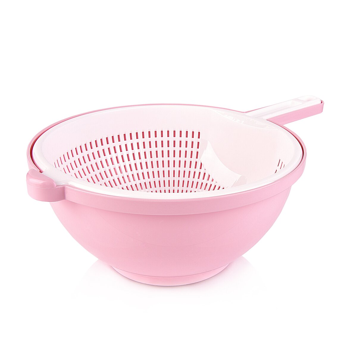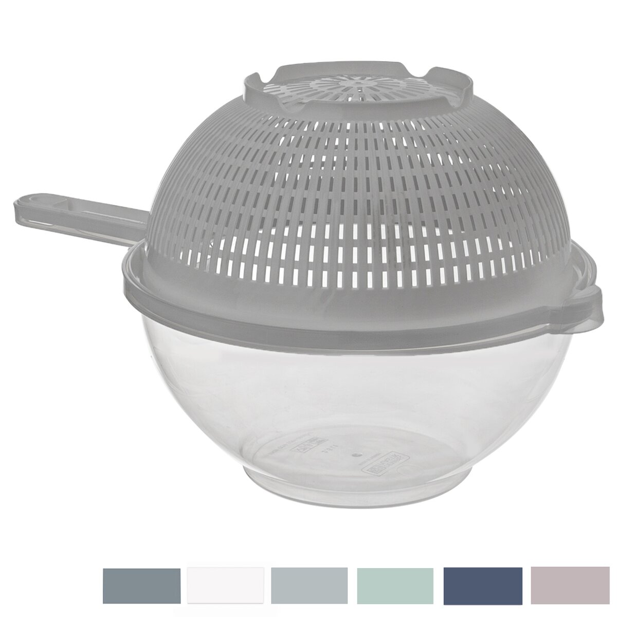Kód produktu 124419Plastová miska o průměru 24 cm s vyjímatelným cedníkem. Obě nádoby jsou opatřeny delší rukojetí, za kterou je možné jejich zavěšení.