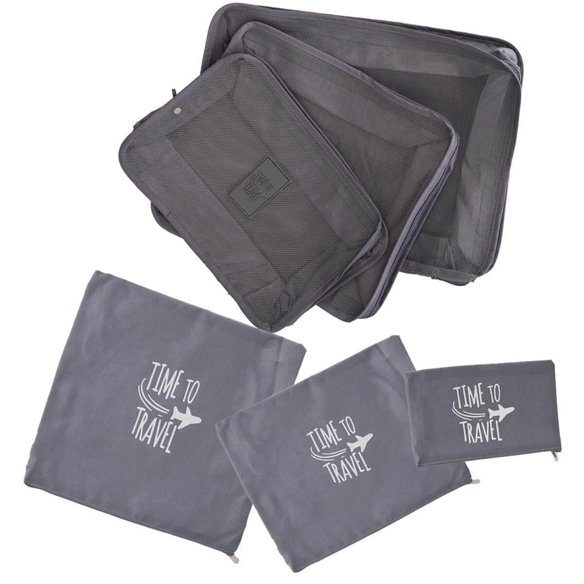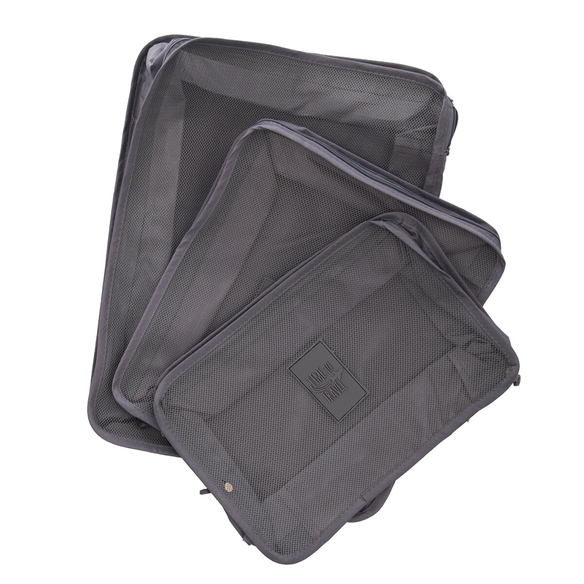 Ať už jste aktivní cestovatelé, nebo jen máte rádi ve svých věcech pořádek, tyto cestovní organizéry si oblíbíte. Díky široké škále rozměrů se do nich vejde spoustu věcí od malých drobností až po oblečení nebo kosmetiku. Šest různě velkých organizérů, které jsou uzavíratelné na zip. Tři jsou opatřeny síťkou pro přehled o obsahu a uchem. Díky organizérům si kufr uspořádáte a budete ho mít přehledně srovnaný. Materiál: polyester, plast, kov, koženka. Rozměry: 40x30x13 cm, 30x28x13 cm, 30x21x12 cm, 35x28 cm, 27x26 cm a 26x17 cm.