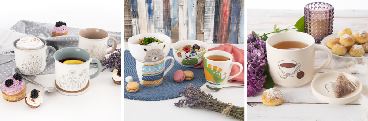 Sady hrnků, hrnků s podšálky jsou praktické, vynikne v nich nejen dobrý čaj, ale i latté, navíc jsou stohovatelné, takže zaberou jen málo místa při uložení. Díky tomu se hodí k použití v domácnosti, ve firemním baru či kuchyňce nebo při hotelové bufetové snídani, kde se hosté sami obslouží. A přípravu čaje nebo kávy zajistí nové konvice v kombinaci skla, kovu a černých prvků na rukojetích a víčku.