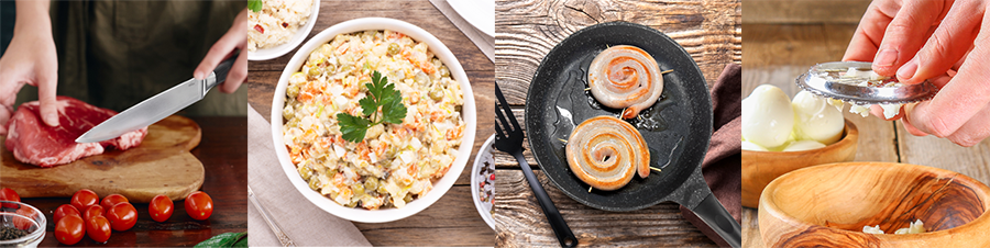 - ostré kovové nože: pomohou s krájením brambor, cibulky i kusu krkovičky na stejnoměrné plátky. U nás teď najdete i luxusní nože z damascénské oceli, které si díky jejich kvalitnímu provedení, ostré čepeli a vyváženému tvaru určitě zamilujete.
