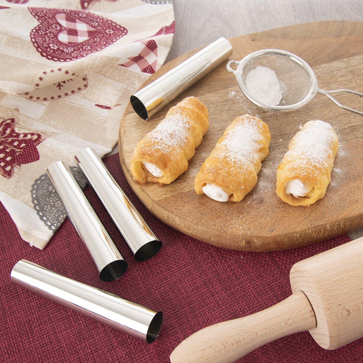 Kód produktu 122404Kovové trubičky kónického tvaru v sadě 10 ks pomohou při pečení dokonalých křehkých kremrolí jako z cukrárny. Průměr trubičkek je 1,9 cm/2,3 cm.