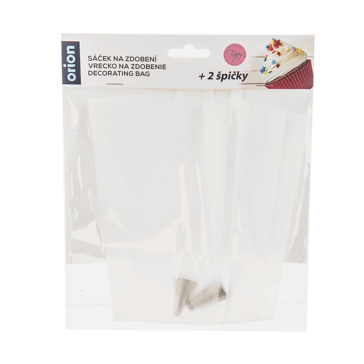 Kód produktu 142248Plastový cukrářský sáček délky 30 cm se dvěma kovovými špičkami je určen k dekorování zákusků, dezertů a dortů krémem, k plnění trubiček, ale i ke zdobení perníčků.