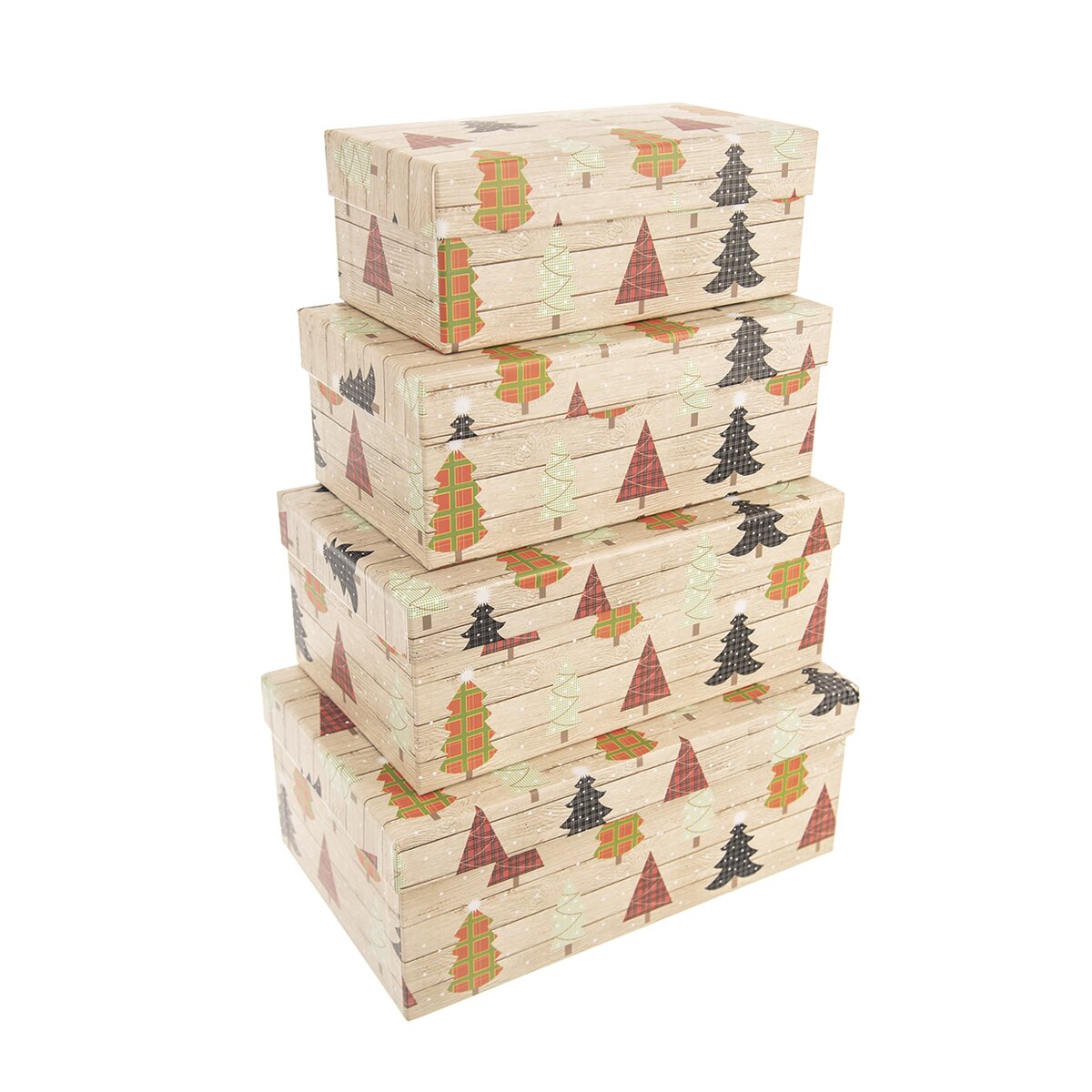 Kód produktu 822711Sada čtyř papírových dárkových krabic s barevným vánočním motivem. Každá krabice má jiný rozměr a vlastní víko.