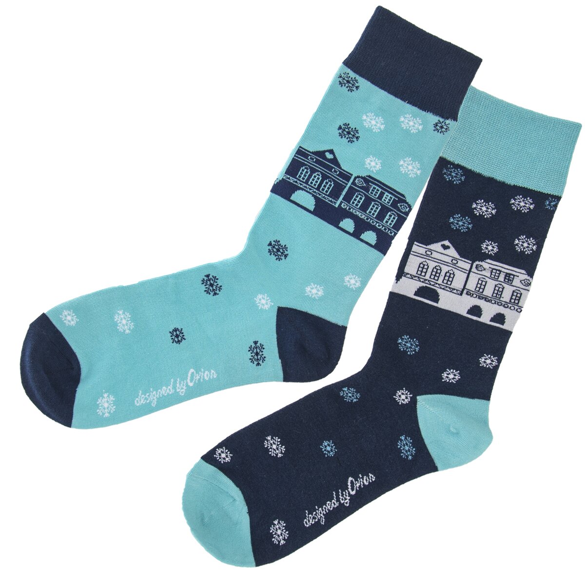 Každá ponožka z páru je jiná, přesto tvoří pár. Mají univerzální velikost 38 - 43 a jejich složení je 70% bavlna, 27% polyamid, 3% elastan.