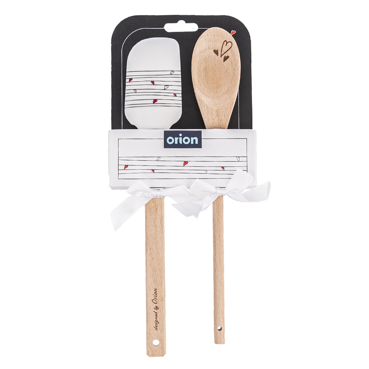 Kód produktu 142841Sada silikonové kuchyňské stěrky a dřevěné vařečky s motivem drobných srdcí může být skvělým dárkem nebo pozorností pro začínající nebo zkušené kuchaře a kuchařky.