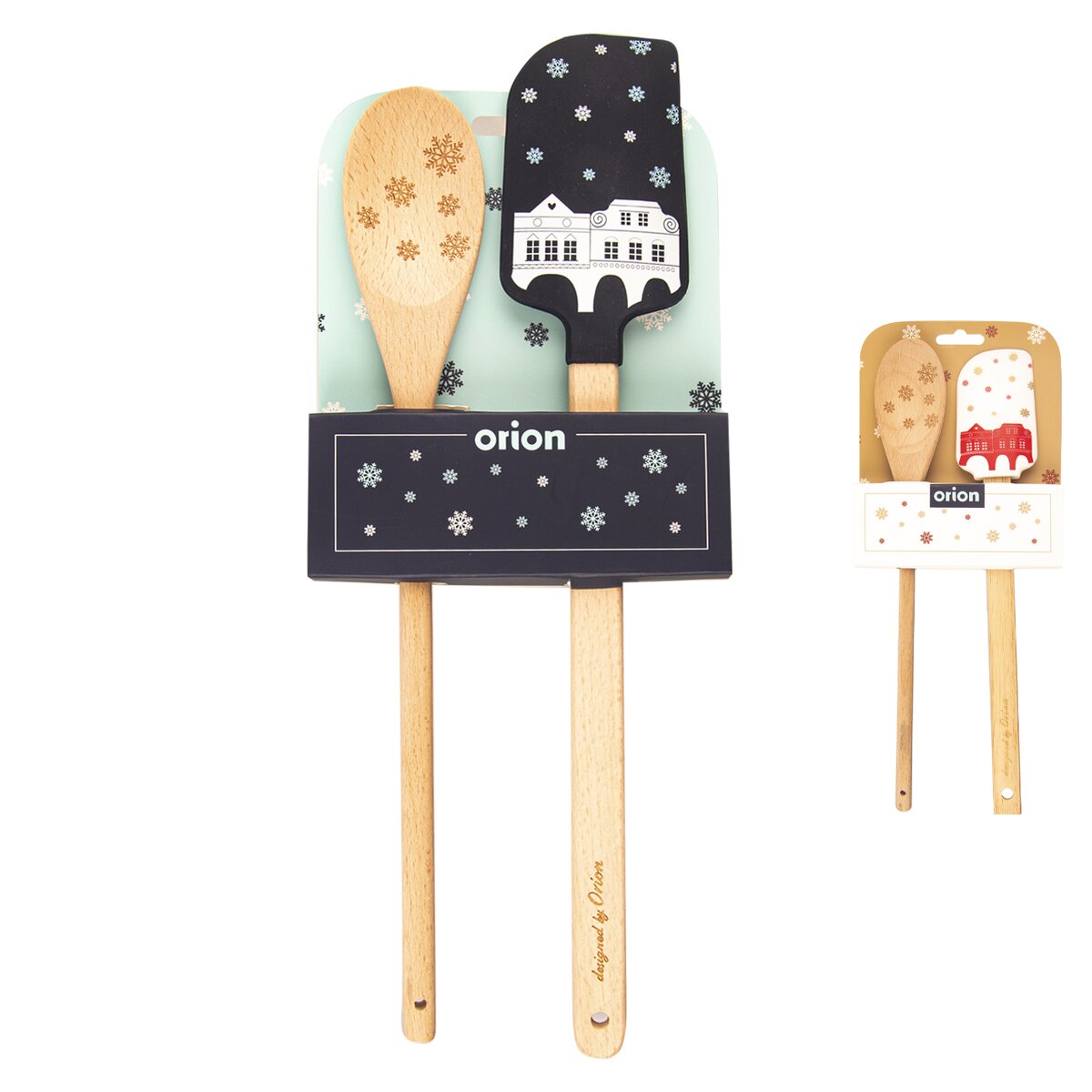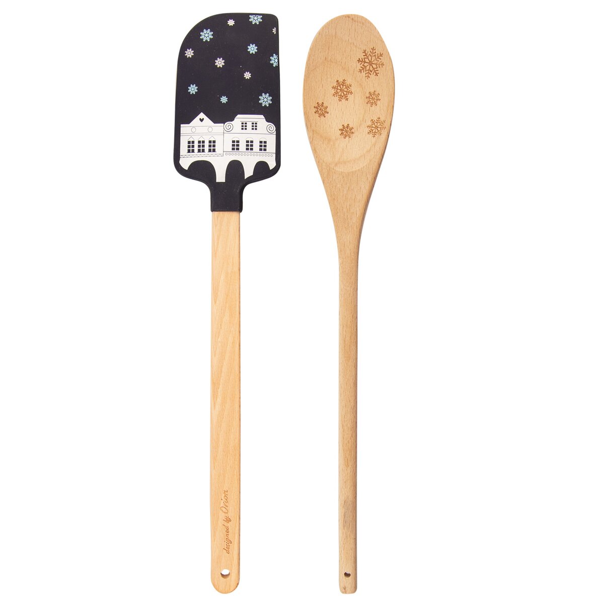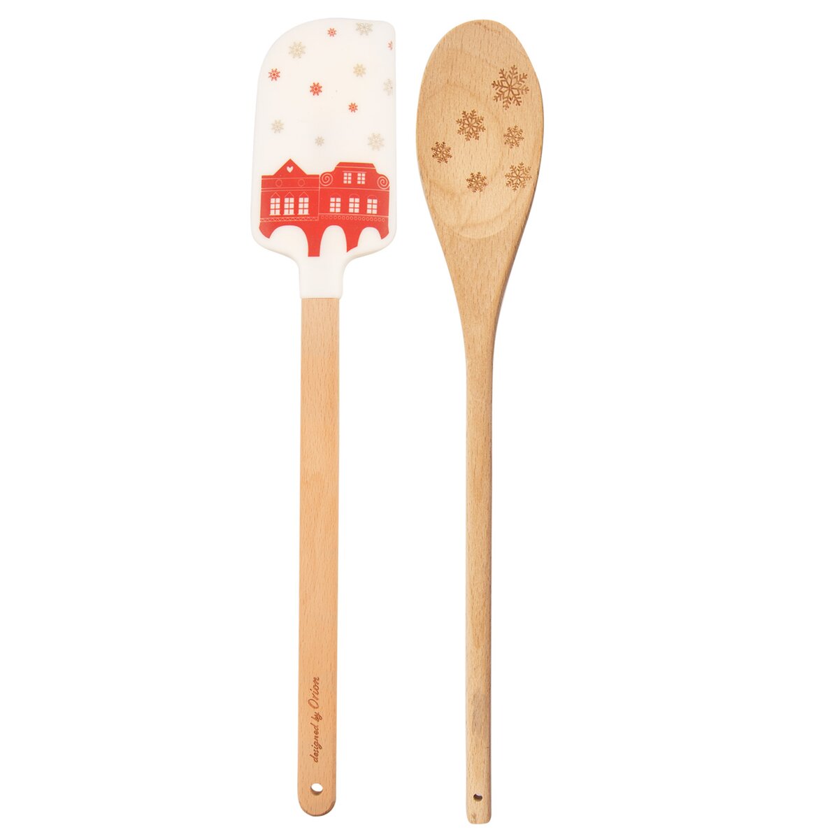 Sada kuchyňské stěrky a vařečky s vánočním motivem může být skvělým dárkem nebo pozorností v době Vánoc. Měkké hrany stěrky dokonale přilnou k nádobě. Dvě barevné varianty. Dárkové balení. Materiál: silikon - lze bez problému použít do teploty -40°C až +120°C, je vhodná prakticky pro všechny druhy potravin - jak vodné, třeba i kyselé, ale také i s obsahem tuku či oleje včetně alkoholických, dřevo. Rozměry: stěrka š. 5 cm, d. 29 cm, vařečka š. 4,5 cm, d. 29 cm.