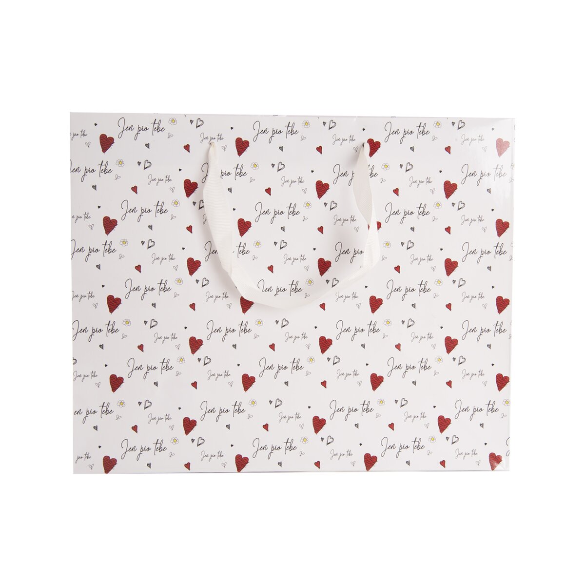 Kód produktu 822784Papírová dárková taška JEN PRO TEBE o rozměrech 32x12x26 cm s originálním potiskem je vhodná k uložení nejrůznějších dárků.