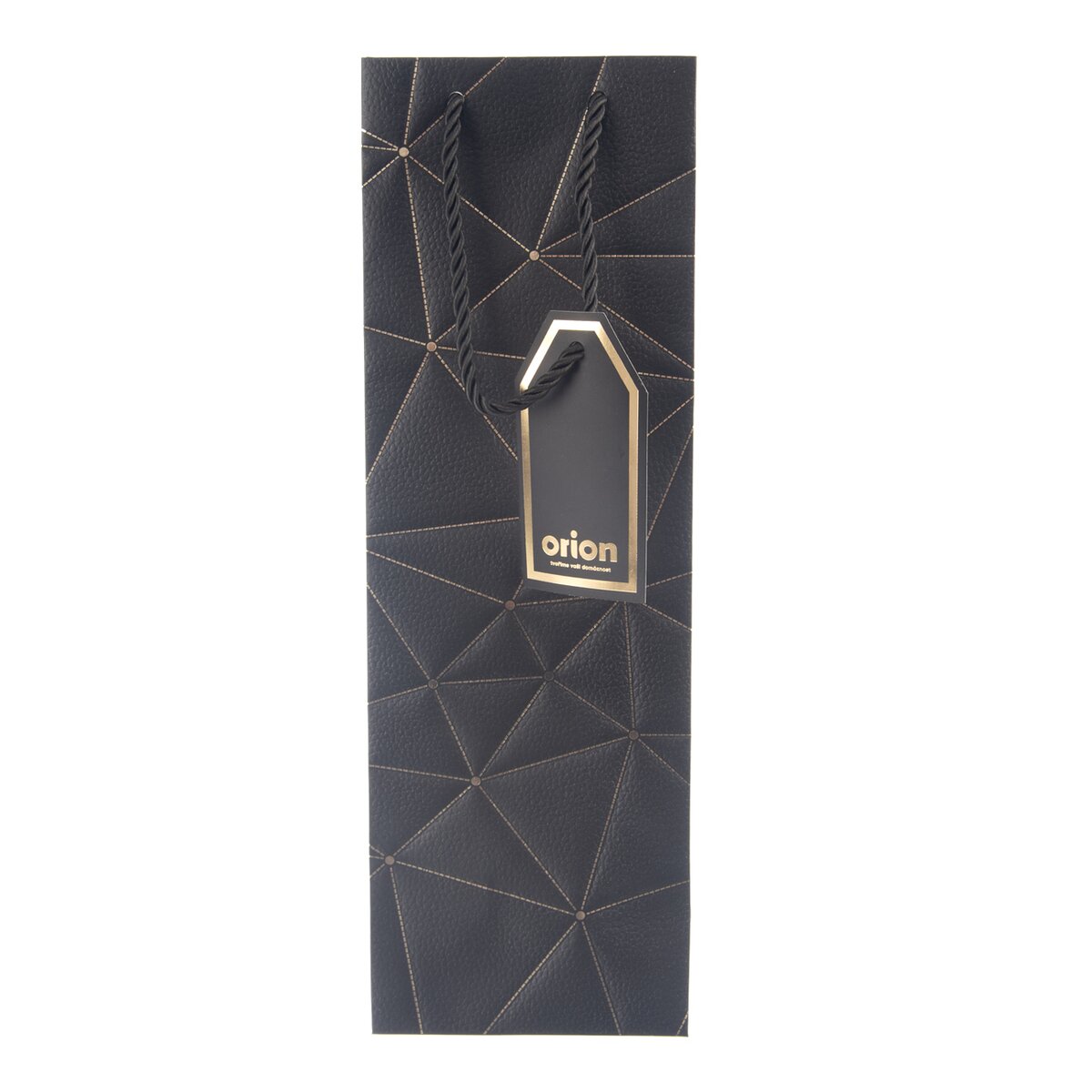 Kód produktu 822733Papírová dárková taška na víno o rozměrech 12x9x36 cm v luxusním černém provedení.