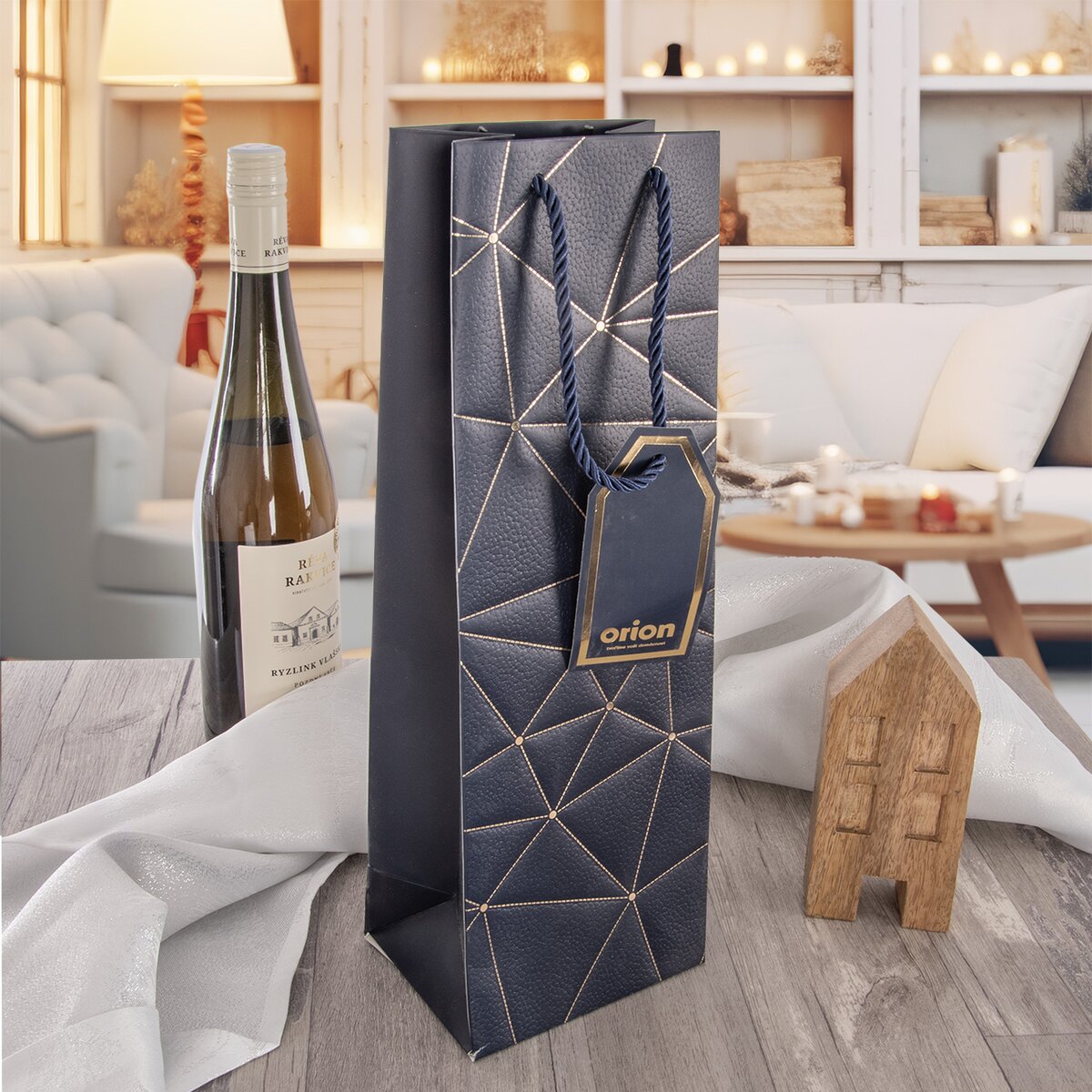 Elegantní, luxusně vypadající dárková taška je tím pravým místem k uložení láhve vína, domácího sirupu nebo dárků, které mají užší, podlouhlý tvar.