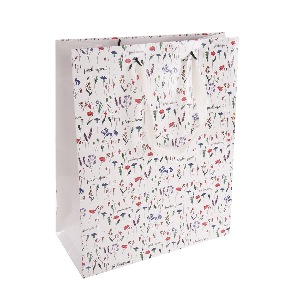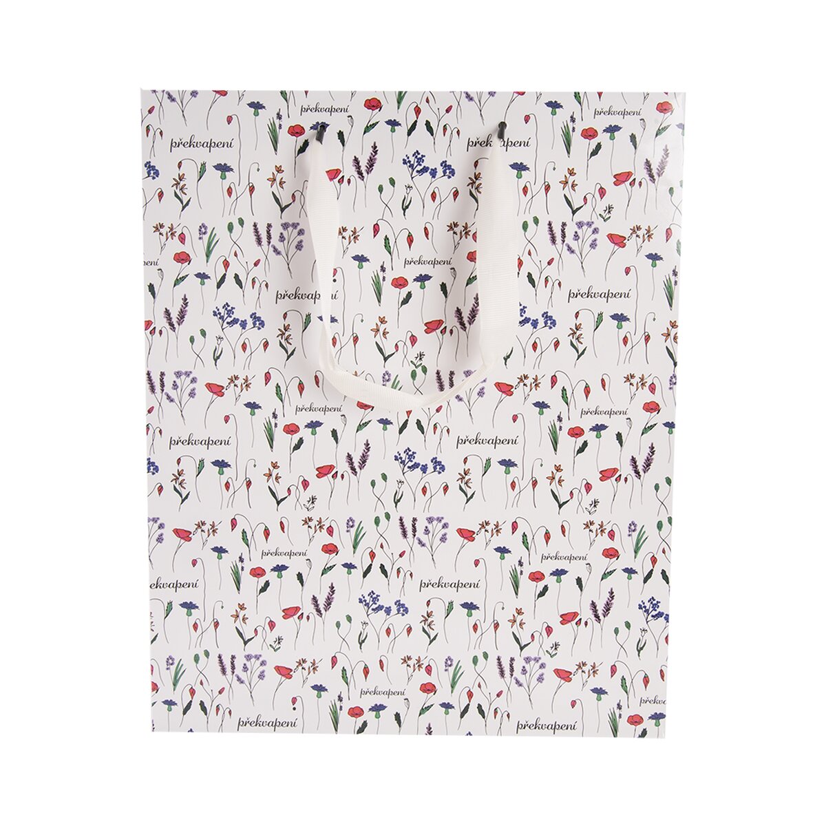 Kód produktu 822772Papírová dárková taška PŘEKVAPENÍ o rozměrech 26x12x32 cm s originálním potiskem je vhodná k uložení nejrůznějších dárků.