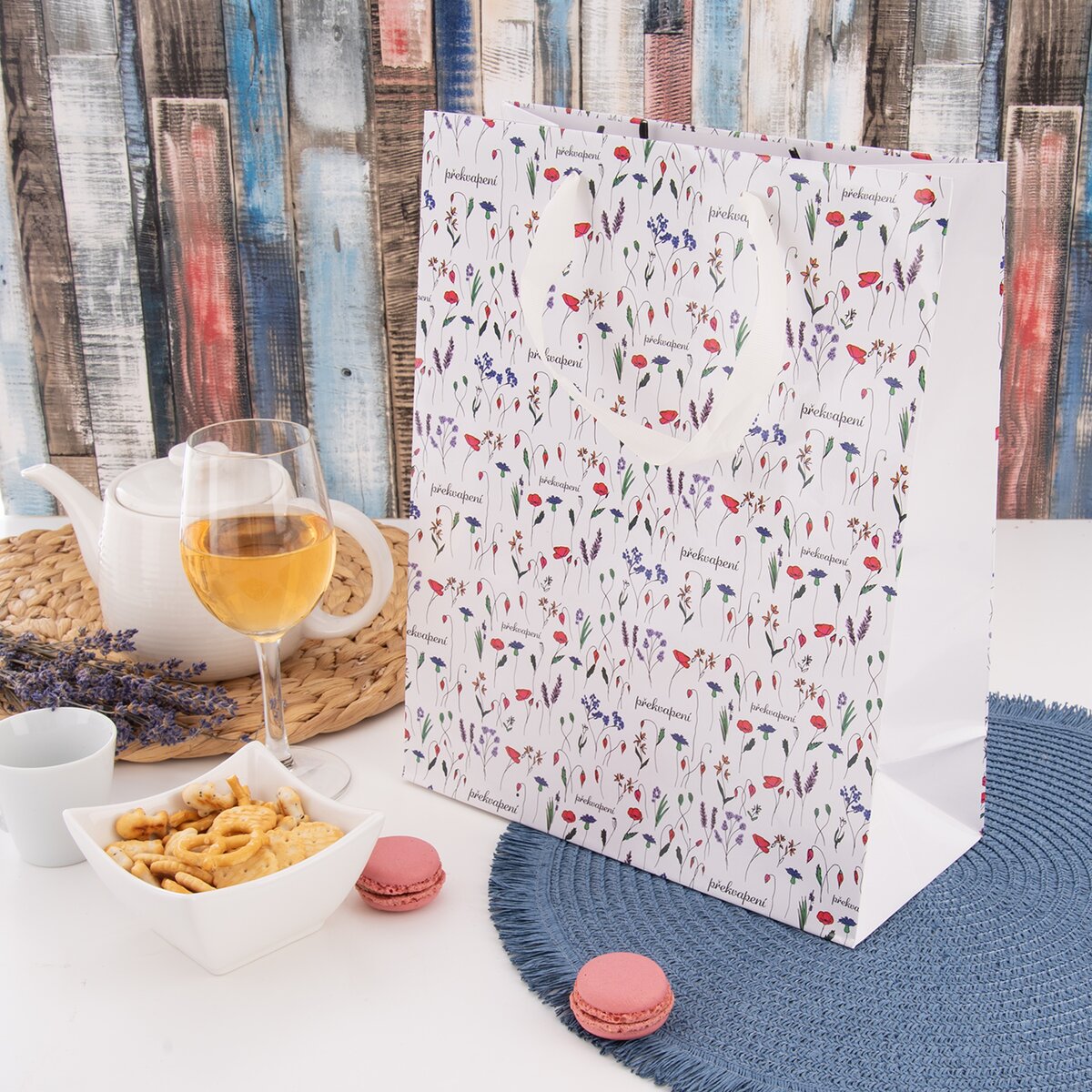 Dekor s lučním kvítím vznikl v dílně našich kreativců a obdarovanému napoví, že vložený dárek bude opravdu překvapením pro obdarovaného.