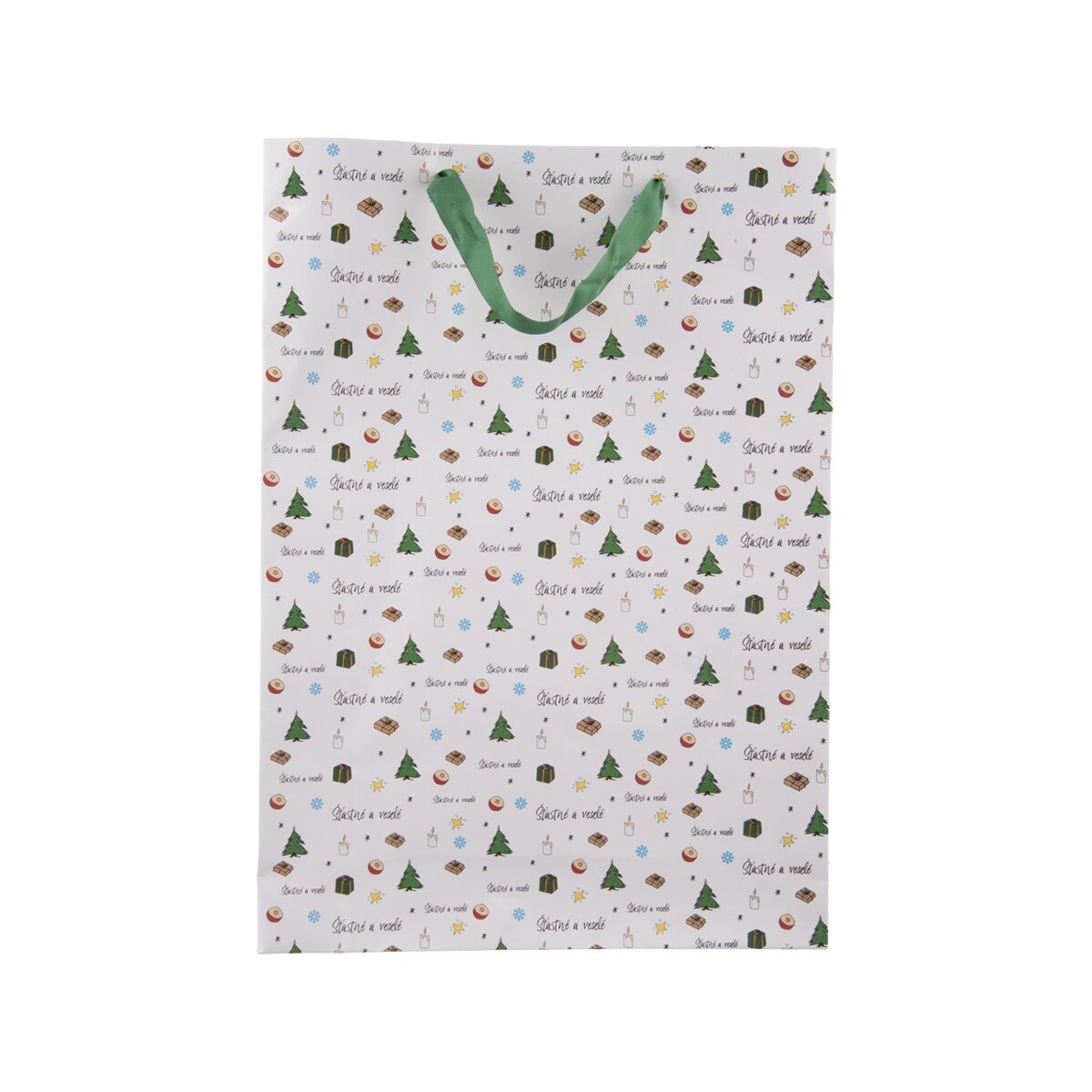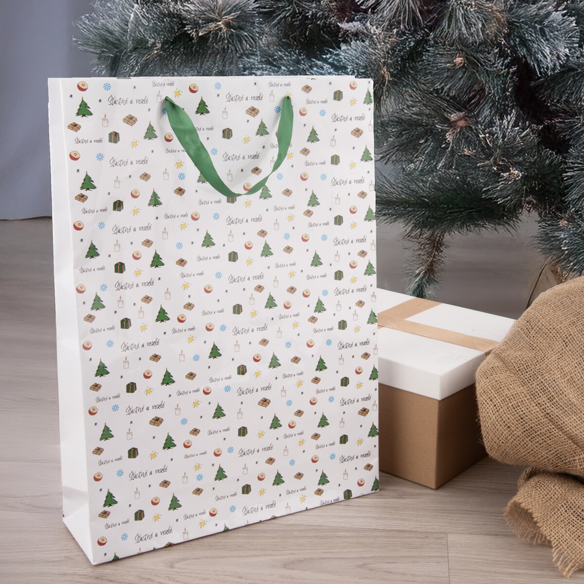 Velká dárková taška ŠŤASTNÉ A VESELÉ je skvělým místem k uložení nejrůznějších dárků, nejen tzv. "měkoušů". Pro partnera, rodinu, kamarády, ale i pro oblíbeného kolegu na předvánočním večírku.