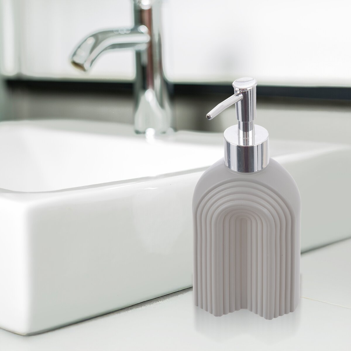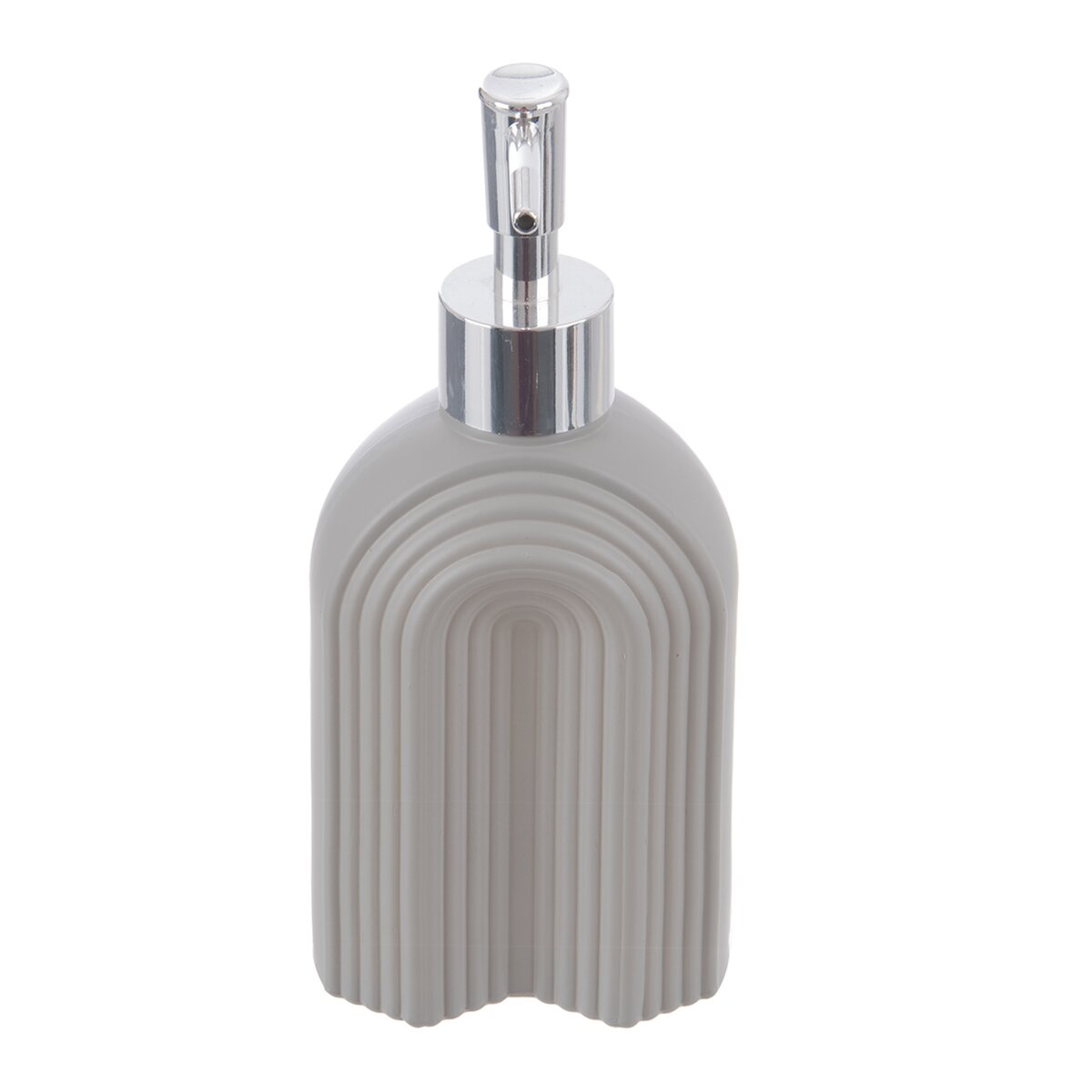 Kód produktu 530795Skleněný dávkovač mýdla nebo saponátu o objemu 0,32 l je zdoben zajímavým reliéfem a má šedý nástřik.