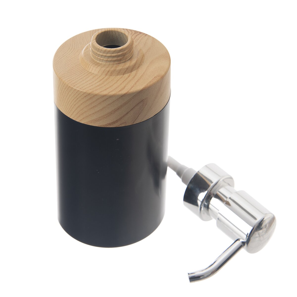Kód produktu 530790Plastový dávkovač mýdla BLACK o objemu 0,38 l, v kombinaci černé barvy a imitace dřeva, vhodný na dávkování tekutého mýdla i saponátu.