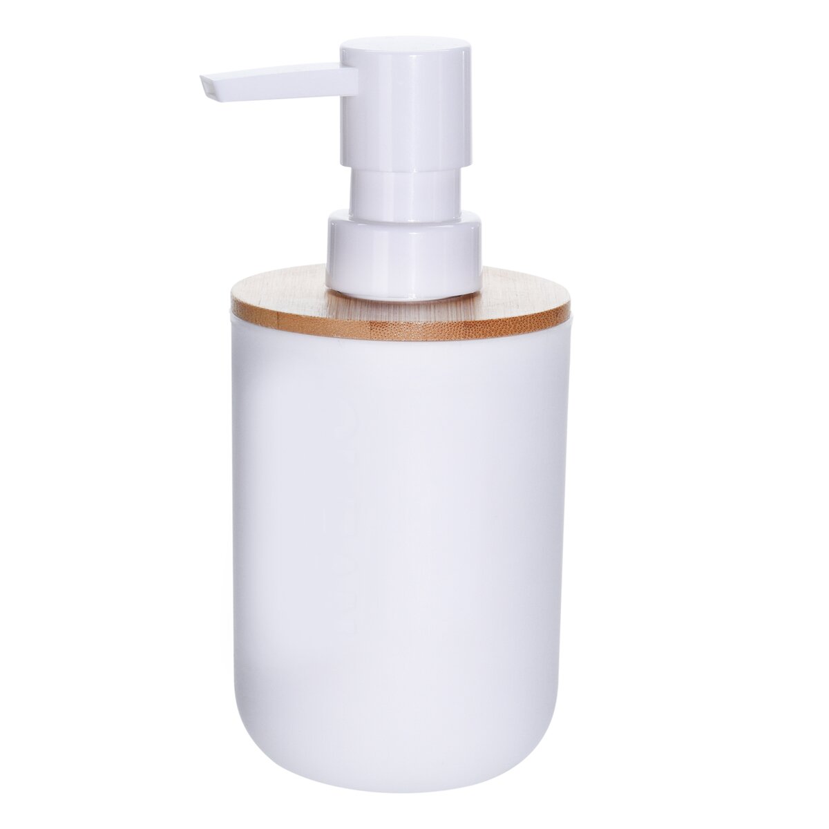 Kód produktu 530779Dávkovač mýdla o objemu 0,33 l v bílém provedení v kombinaci s bambusem.