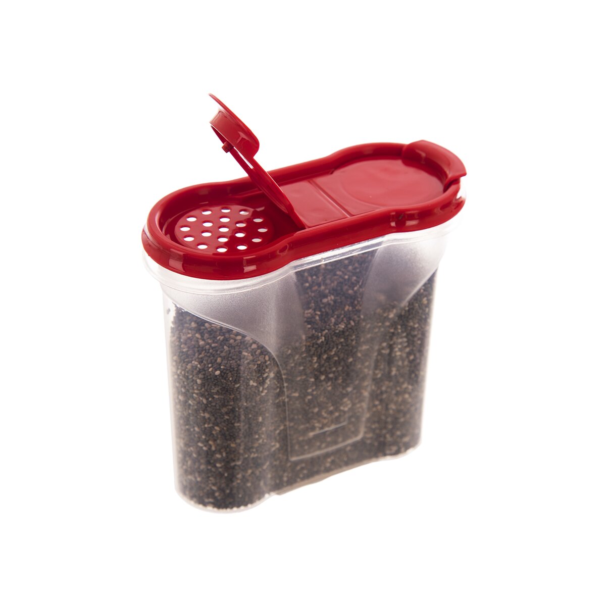 Má dva dávkovací otvory, které usnadňují odměření a sypání potravin.