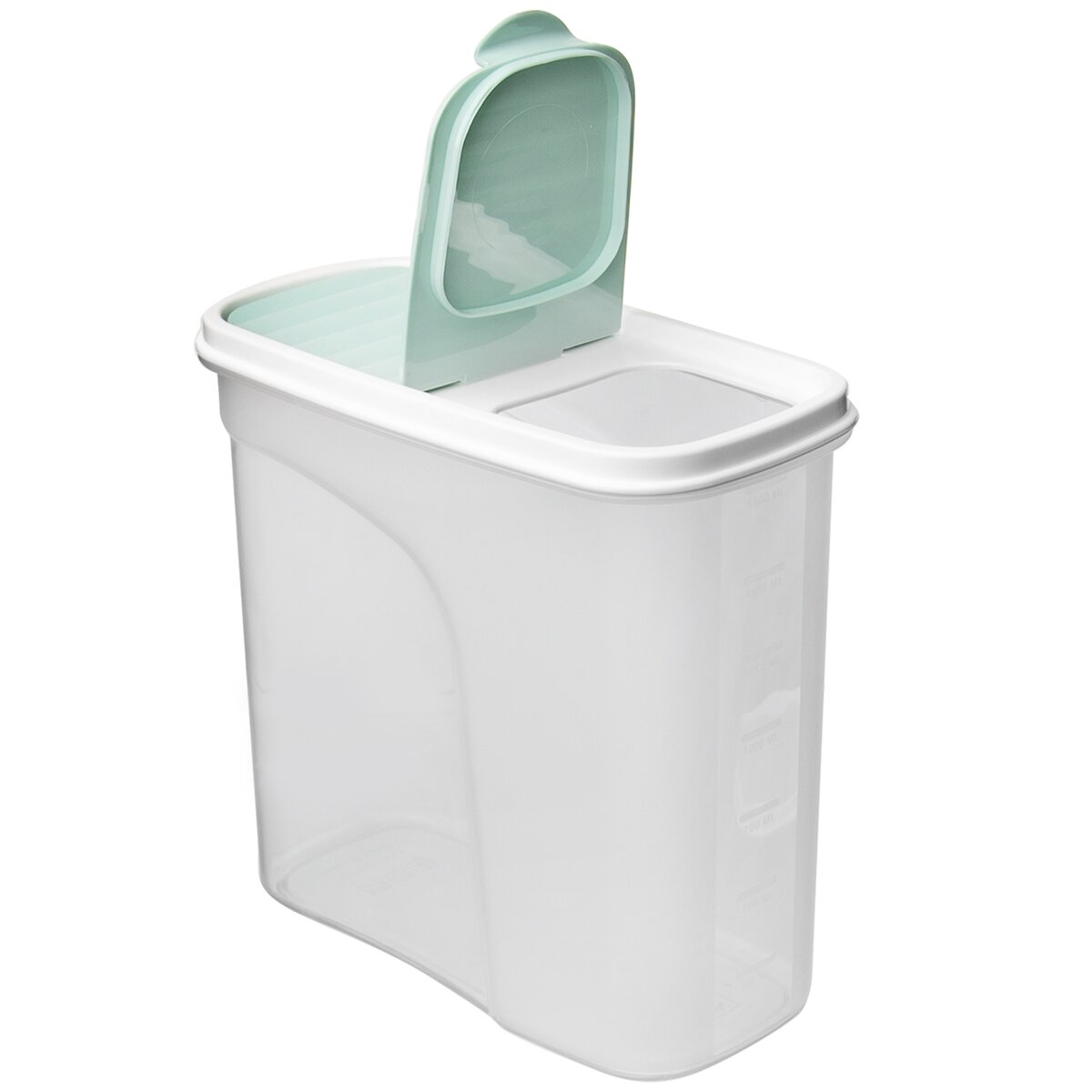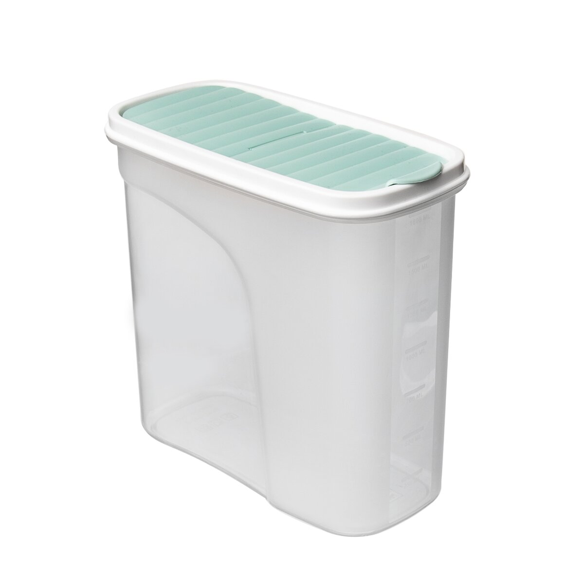 Kód produktu 127141Poloprůhledná dóza BONNY o objemu 1,8 l s praktickým odklápěcím víčkem a vyznačenou měrnou stupnicí.