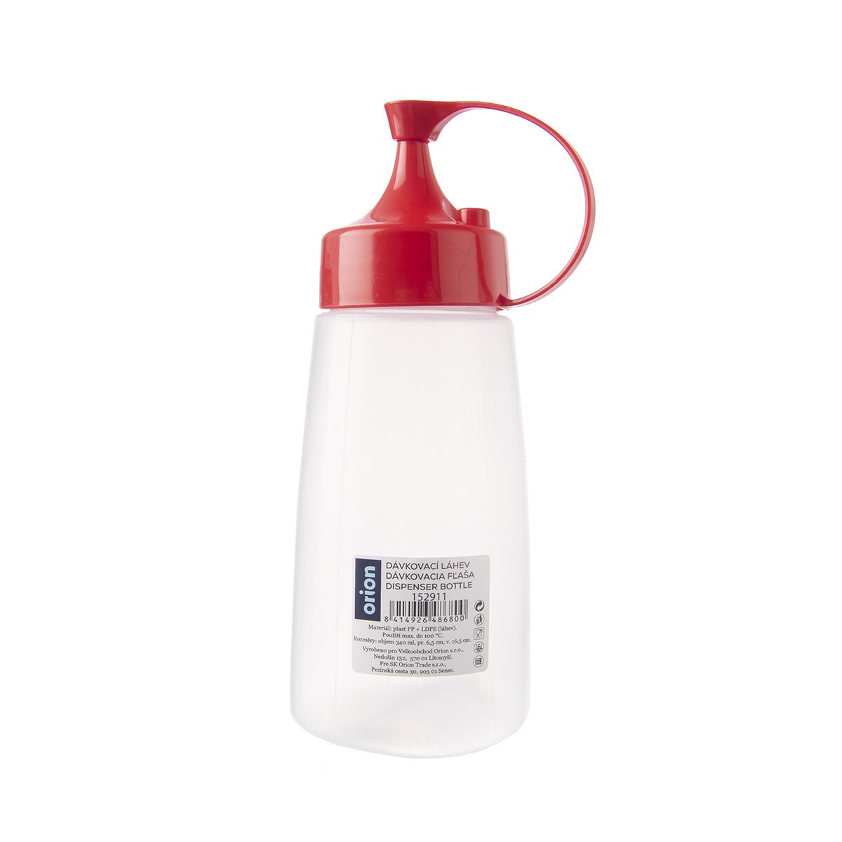 Kód produktu 152911Dávkovací plastová láhev o objemu 340 ml, doplněná šroubovacím víčkem a odnímatelným uzávěrem v červené barvě. Hodí se k podávání dochucovadel, kečupu, hořčice, majonéz, octa či oleje nejen při grilování, ale i na polevy a topingy.