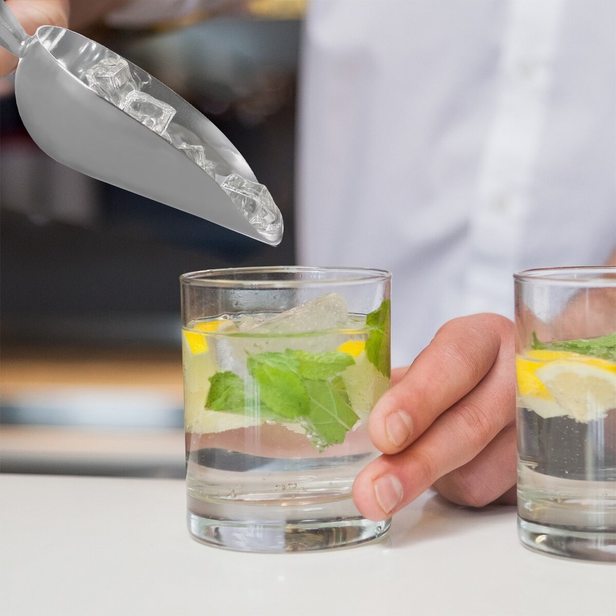 V gastroprovozech, restauracích, bezobalových obchodech s ní pohodlně naberete strouhanku či mouku, ocení ji i prodejny se sušeným ovocem, ořechy či sypanými čaji. Barmani s její pomocí naberou led nebo ledovou tříšť při míchání drinků.