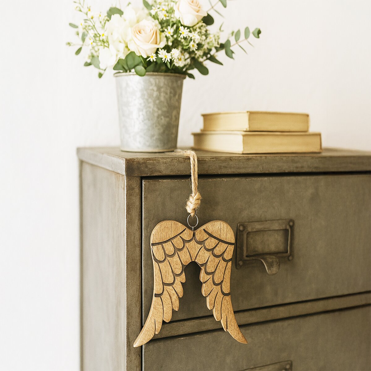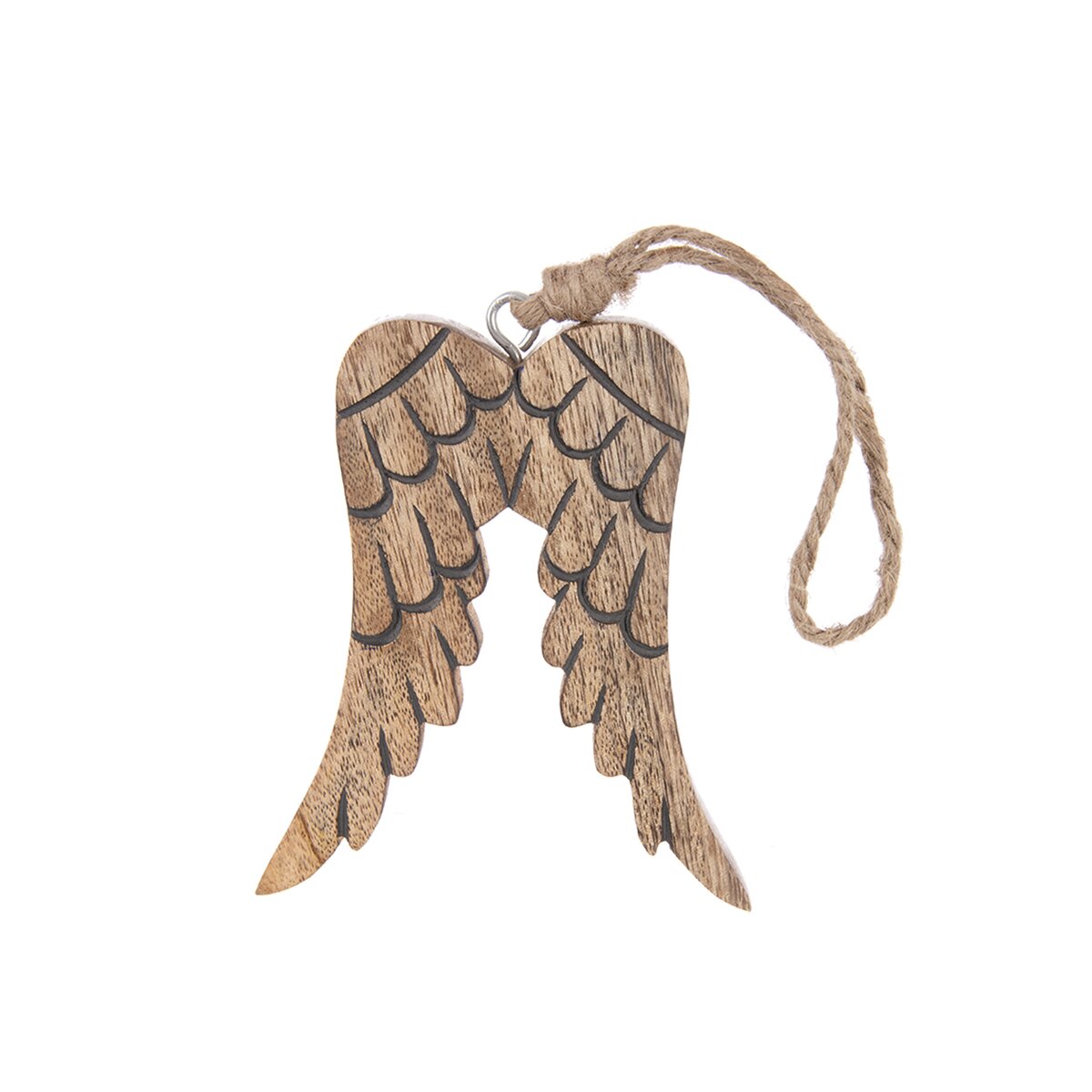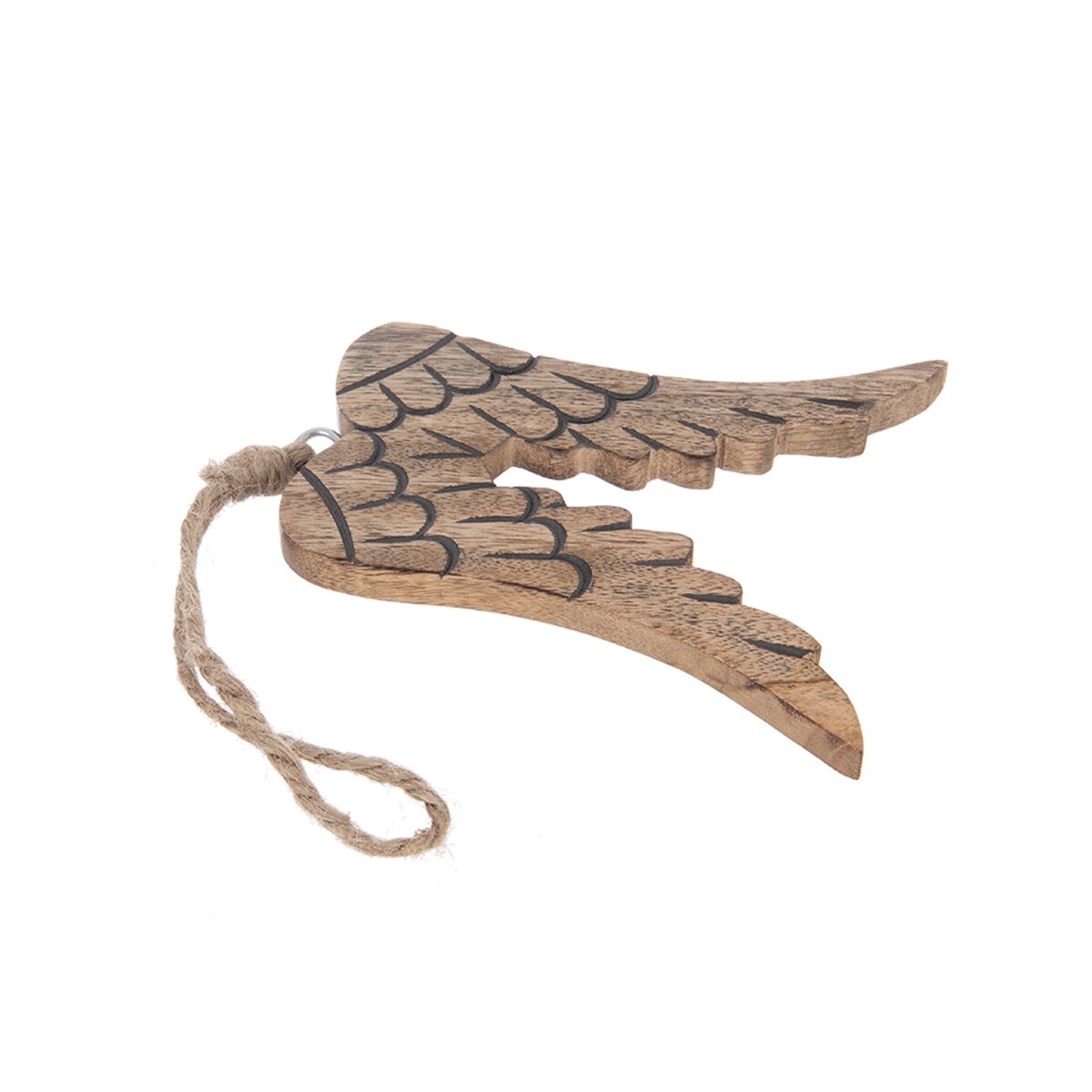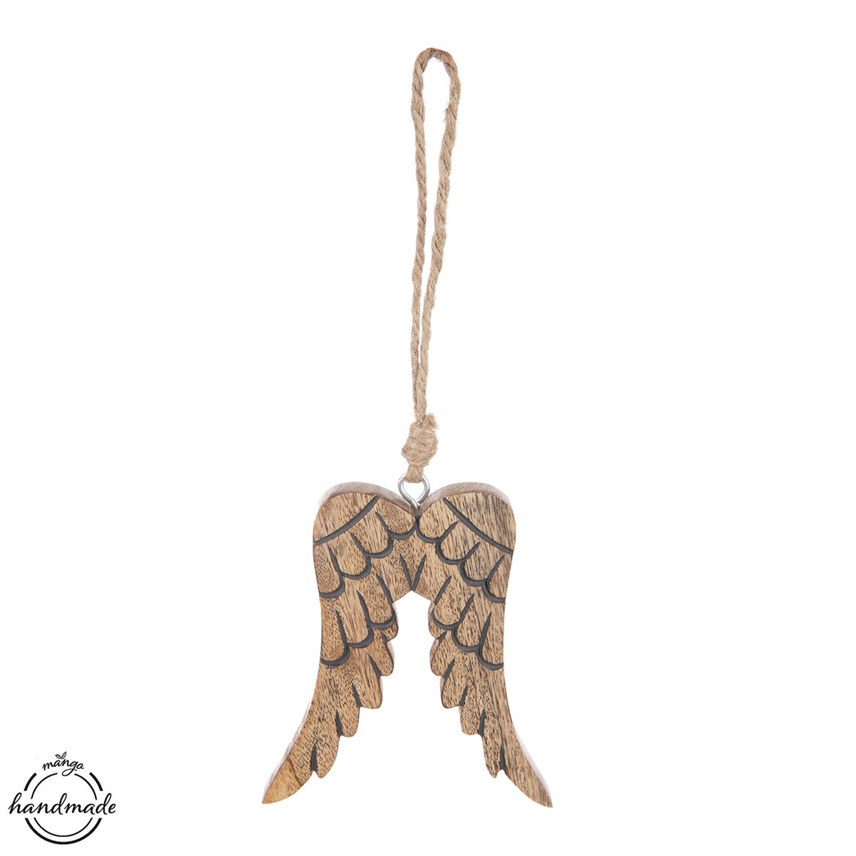 Kód produktu 351874Andělská křídla mají krásnou texturou mangového dřeva a decentní vypalovaný reliéf. Jsou doplněna jutovým provázkem, lze je zavěsit kamkoliv v interiéru.