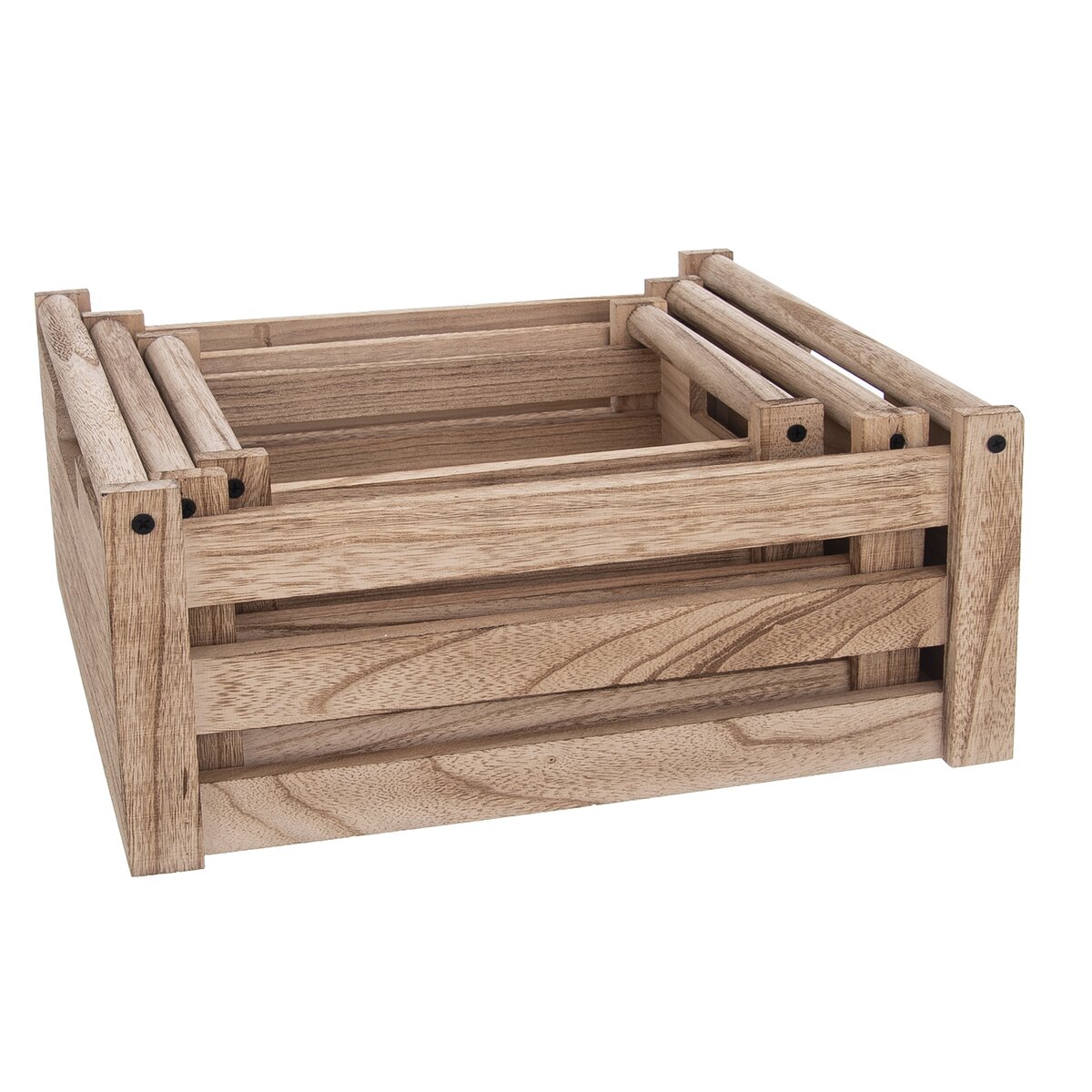 Kód produktu 731033Dřevěná bedýnka rozměru 31x21x14 cm vychází z obliby jednoduchých přepravek bez povrchové úpravy, vhodná k uložení nejrůznějších předmětů i jako samostatný dárek.