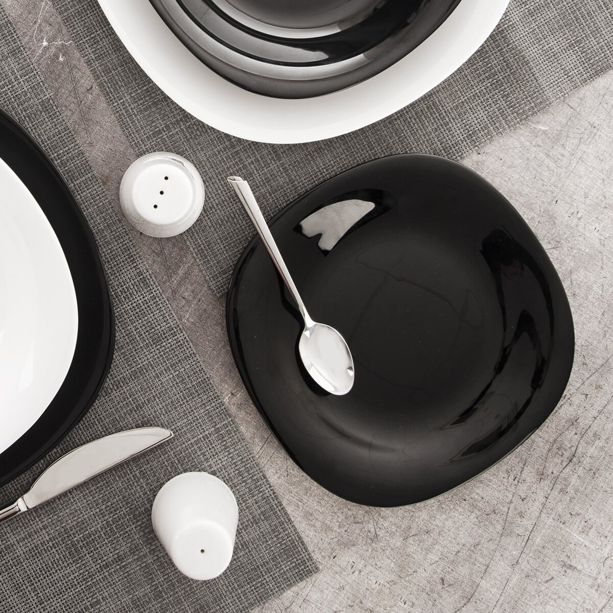 Efektní foodstyling vynikne i díky hranatému, zaoblenému tvaru talíře, lze jej kombinovat s dalšími typy talířů z kolekce LUNA.