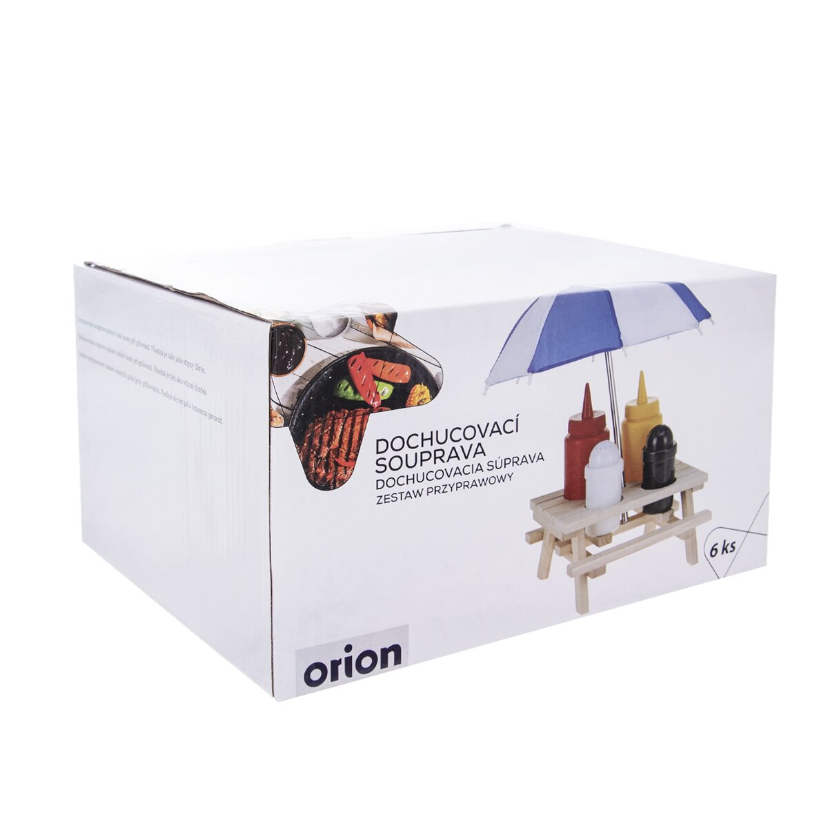 Dochucovací souprava pobaví vaše hosty při grilování. Vhodná je také jako vtipný dárek. Materiál: dřevo, plast, kov. Rozměry: 17x14,5x30 cm.